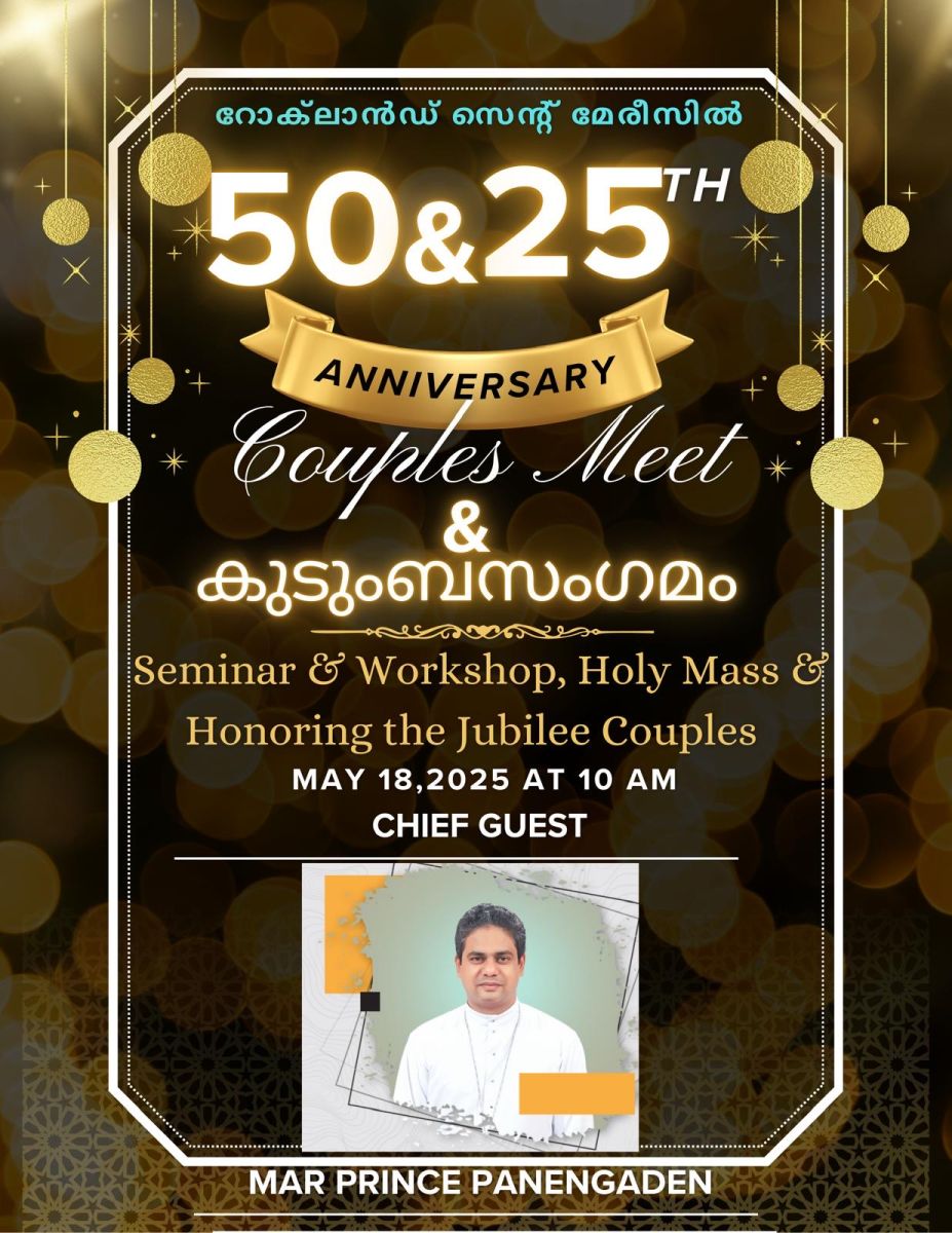 ന്യൂയോർക്കിലെ റോക്ലാൻഡ് സെന്റ് മേരീസ് ക്നാനായ കത്തോലിക്ക ദേവാലയത്തിൽ മെയ് 18-ാം തീയതി (ഞായറാഴ്ച) കുടുംബ സംഗമം നടത്തുകയും, വിവാഹജീവിതത്തിൽ 50 വർഷവും 25 വർഷവും പൂർത്തിയാക്കിയ 44 ദമ്പതികളെ ആദരിക്കുകയും ചെയ്തു.