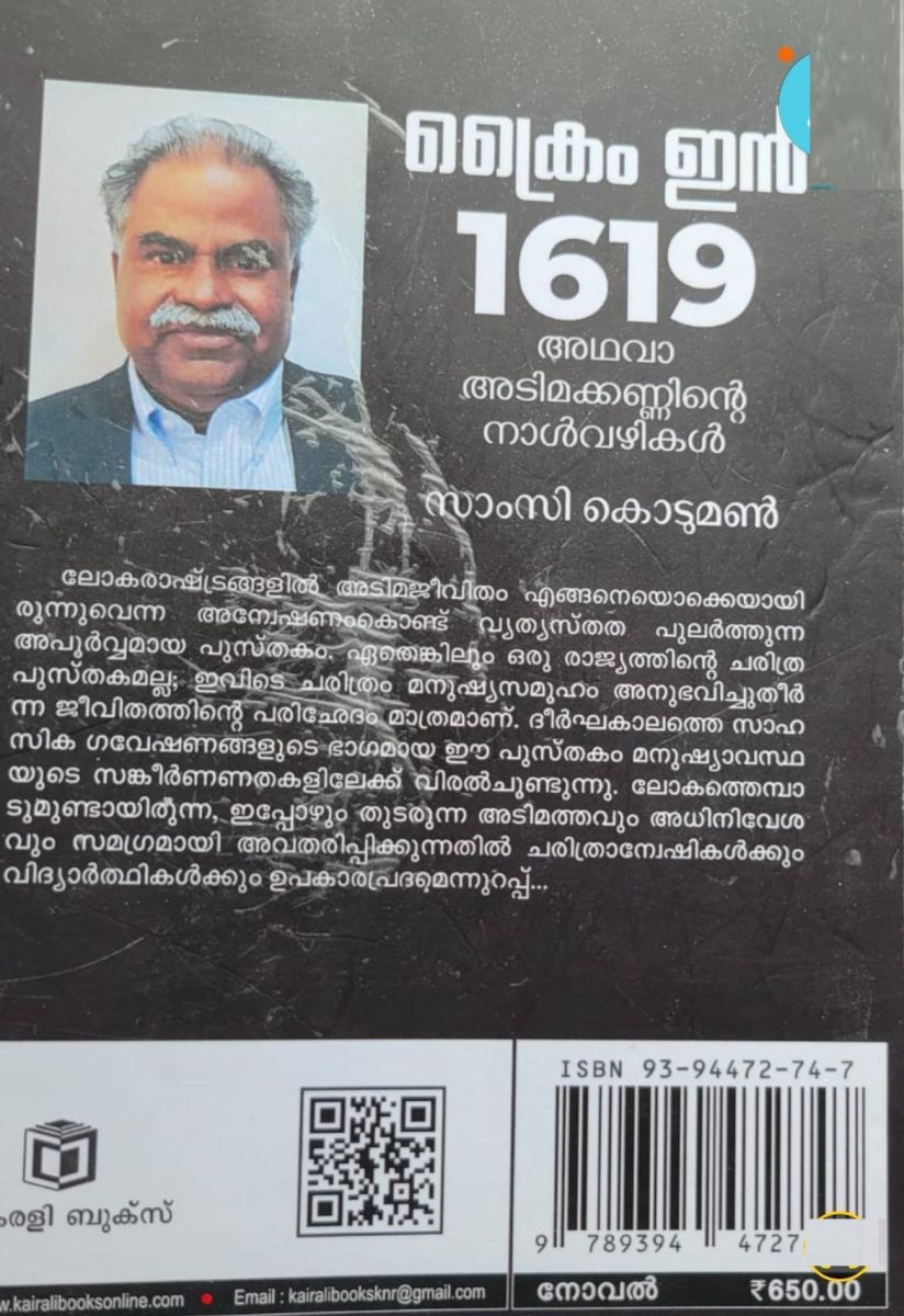 കണ്ണൂര്: അമേരിക്കന് എഴുത്തുകാരന് സാംസി കൊടുമണിന്റെ څക്രൈം ഇന് 1619 അഥവാ അടിമക്കണ്ണിന്റെ നാള്വഴികള്چ എന്ന നോവലിന്റെ പരിഷ്കരിച്ച പതിപ്പ്, കൈരളി ഇന്റര്നാഷണല് ഫെസ്റ്റിവലില് (ജവഹര് ഓഡിറ്റോറിയം) വച്ച്, പ്രശസ്ത സംവിധായകന് ബ്ലെസ്സി അമേരിക്കന് പ്രവാസി എഴുത്തുകാരന് അബ്ദുള് പുന്നയൂര്ക്കുളത്തിനു നല്കി പ്രകാശനം നിര്വ്വഹിച്ചു; കൈരളി പബ്ലിഷര് അശോകന്, സിനിമാലോകത്തെ പ്രമുഖര് തുടങ്ങിയവര് സംബന്ധിച്ചു.