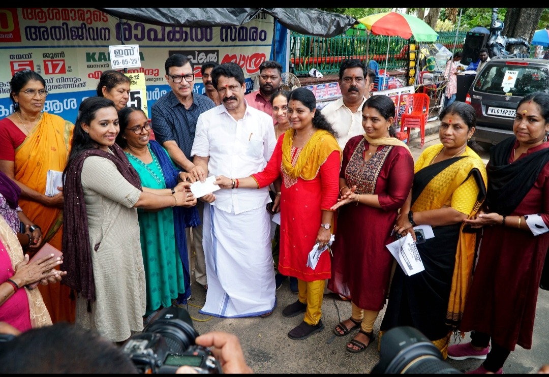 തിരുവനന്തപുരം: കേരള ആശാ ഹെല്ത്ത് വര്ക്കേഴ്സ് അസോസിയേഷന് സംസ്ഥാന ജനറല് സെക്രട്ടറി എം.എ.ബിന്ദു നയിക്കുന്ന രാപകല് യാത്രയ്ക്ക് ആദ്യ സംഭാവനയുമായി അമേരിക്കന് മലയാളി.തുശ്ചമായ ഓണറേറിയം വര്ദ്ധിപ്പിക്കണമെന്നാവശ്യപ്പെട്ട്് മുന്ന് മാസത്തോളമായി സെക്രട്ടേറിയറ്റിനു മുന്നില് നടക്കുന്ന ആശവര്ക്കര്മാരുടെ രാപകല് സമരത്തെ പിന്തുണച്ച് അമേരിക്കയില് ആദ്യ കാലം കുടിയേറിയ നേഴ്സും പൊതുപ്രവര്ത്തകയുമായ പൊന്നുപിള്ളയാണ് പെന്ഷന് തുകയില് നിന്ന് ഒരുലക്ഷം രൂപ നല്കിയത്. രാപകല് യാത്ര കാസര്കോട് ആരംഭിച്ച ദിവസം തന്നെ തിരുവനന്തപുരത്തെ സമരപ്പന്തലില് അസോസിയേഷന് സംസ്ഥാന വൈസ് പ്രസിഡന്റ് എസ്.മിനിയ്ക്ക് നഗരസഭയിലെ വനിതാ കൗണ്സിലര്മാരായ ആശാനാഥ്, സുമിബാലു, ഒ.പത്മലേഖ, പി.എസ് ദേവിമ, വി.മീനദിനേഷ് എന്നിവര് ചേര്ന്ന് ചെക്ക് കൈമാറി. കൗണ്സിലര്മാരായ എം.ആര്.ഗോപന്,പി.അശോക് കുമാര്, കെ.കെ സുരേഷ്, ഡി.ജി കുമാരന്,ആശാവർക്കർ നേതാക്കളായ ആര്.സി ബീന, ജയാരാജീവ് തുടങ്ങിയവര് സന്നിഹിതരായിരുന്നു.
