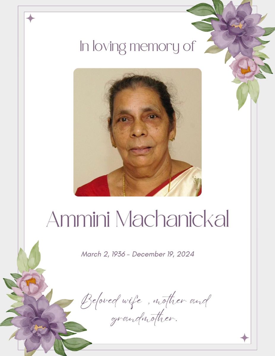 Ammini Machanickal (88), passed away in Calicut, India.