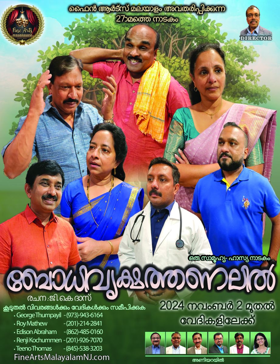 തുടങ്ങിയവരൊക്കെ സോഷ്യൽ മീഡിയയിൽ ആവോളം പുകഴ്ത്തിയ ഫൈൻ ആർട്സ് മലയാളത്തിന്റെ, ഏറ്റവും പുതിയ, 67-)മത് സ്റ്റേജ് പ്രൊഡക്ഷനായ ''ബോധിവൃക്ഷത്തണലിൽ'' നവംബർ 2 ശനിയാഴ്ച 5.30ന് ടാഫ്റ്റ് റോഡിലെ ബെഞ്ചമിൻ ഫ്രാങ്ക്ളിൻ മിഡിൽ സ്കൂളിലാണ് അരങ്ങേറുന്നത്.പ്രശസ്ത അറ്റോർണി ജയശ്രീ പട്ടേൽ ആണ് മുഖ്യാതിഥി.