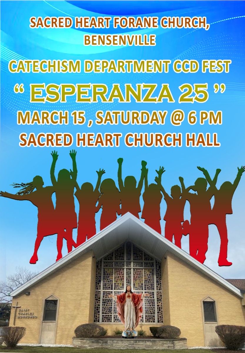 ചിക്കാഗോ: ബെൻസൻവിൽ തിരുഹൃദയ ക്നാനായ കത്തോലിക്ക ദൈവാലയത്തിൽ മതബോധന വിഭാഗത്തിന്റെ നേതൃത്വത്തിൽ മതബോധന വാർഷികം " എസ്പെരാൻസ 25 " നടത്തപ്പെടുന്നു. പുതിയ ദൈവാലയം സ്വന്തമായി ലഭിച്ചതിനുശേഷമുളള ആദ്യത്തെ വാർഷികം വിപുലമായ പരിപാടികളോടെ മാർച്ച് 15 ശനിയാഴ്ച വൈകിട്ട് 6 pm പള്ളി ഹാളിൽ വെച്ച് നടത്തപ്പെടും.ഇരുന്നൂറിൽ പരം കുട്ടികൾ അണിചേരുന്ന രണ്ട് മണിക്കൂർ ബൈബിൾ അധിഷ്ഠിത കലാപരിപാടി അന്നേ ദിവസം നടത്തപ്പെടും. വാർഷികം ക്നാനായ റീജിയൻ വികാരി ജനറാളും വികാരിയുമായ ഫാ. തോമസ് മുളവനാൽ ഉദ്ഘാടനം ചെയ്യും. അസി. വികാരി ഫാ. ബിൻസ് ചേത്തലിൽ, സി ഡി ഡയറക്ടർ സഖറിയ ചേലയ്ക്കൽ, അസി. ഡയാക്ടർമാരായ ജോബി ഇത്തിത്തറ, കൊളീൻ കീഴങ്ങാട്ട് , കോർഡിനേറ്റർമാരായ നീന കോയിത്തറ, ജയ്ൻ മുണ്ടപ്ലാക്കിൽ, റ്റീന നെടുവാമ്പുഴ, മെറിൻ താന്നിച്ചുവട്ടിൽ എന്നിവരുടെ നേതൃത്വത്തിൽ