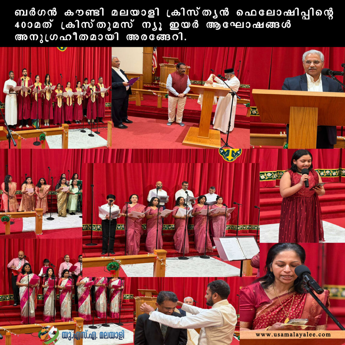 ന്യൂജേഴ്സിയിലെ മലയാളി ക്രിസ്ത്യാനികളുടെ ഐക്യവേദിയായി നാലു പതിറ്റാണ്ടു പിന്നിട്ട ബര്ഗന് കൗണ്ടി മലയാളി ക്രിസ്ത്യന് ഫെലോഷിപ്പിന്റെ 40ാമത് സംയുക്ത ക്രിസ്തുമസ്സ് ന്യൂ ഇയര് ആഘോഷങ്ങള് ഡിസംബര് 28 ഞായറാഴ്ച വാഷിംഗ്ടണ് ടൗണ്ഷിപ്പ് സെന്റ് പീറ്റേഴ്സ് മാര്ത്തോമ്മാ ദൈവാലയത്തില് വെച്ച് അനുഗ്രഹീതമായി നടത്തപ്പെട്ടു.