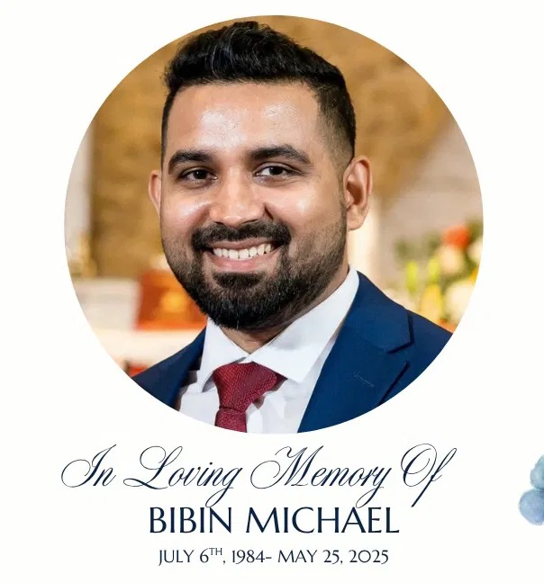 ന്യു ജേഴ്സി: സുഹൃത്തുക്കളെ രക്ഷിക്കാനുള്ള ശ്രമത്തിൽ മുങ്ങി മരിച്ച ബിബിൻ മൈക്കിളിന്റെ (40) സംസ്കാരം ജൂൺ 2-തിങ്കളാഴ്ച നടക്കും.