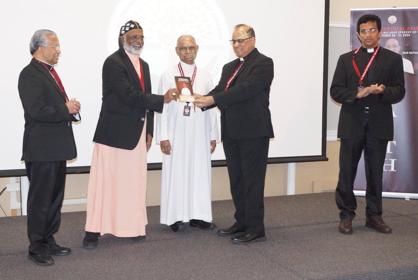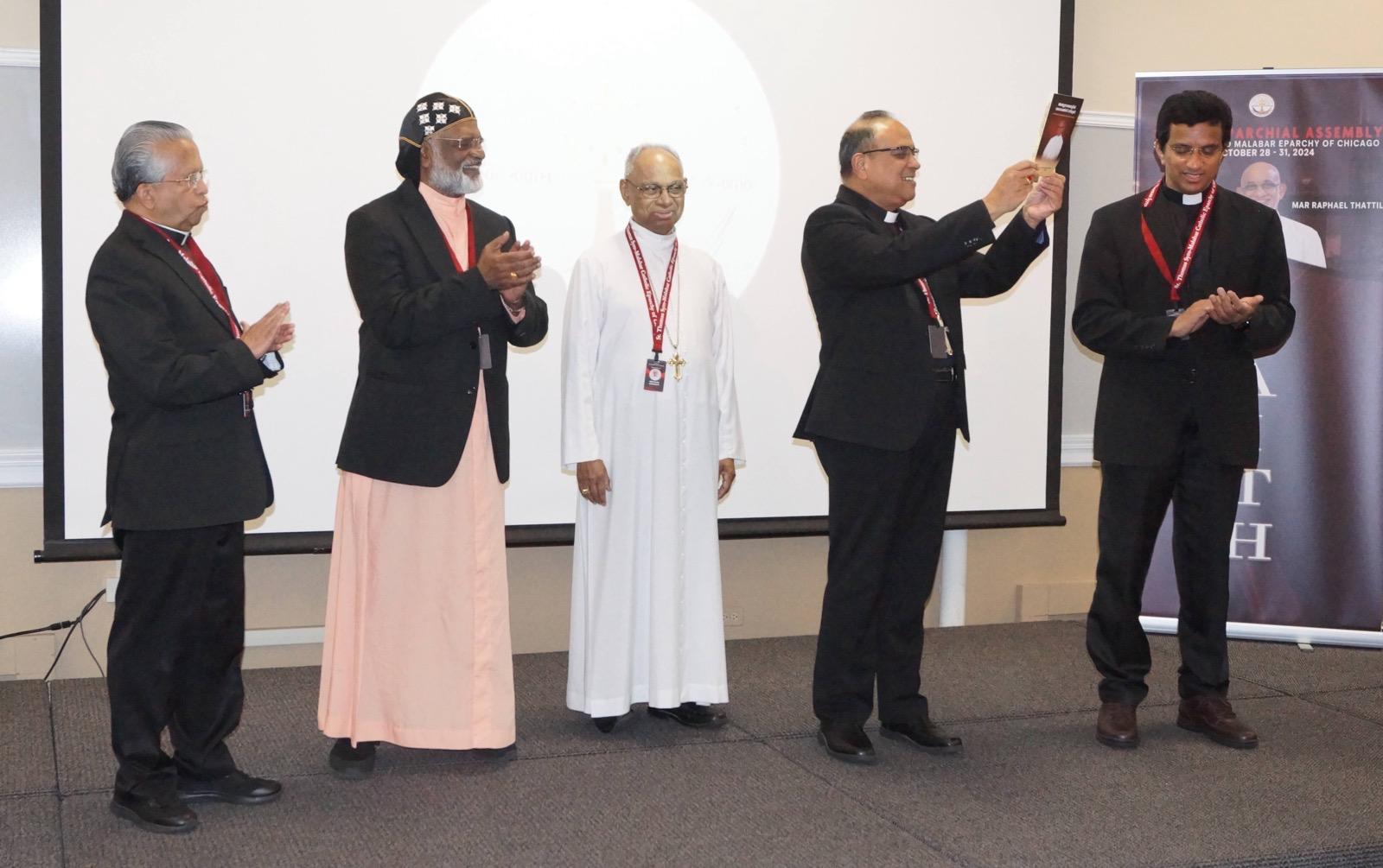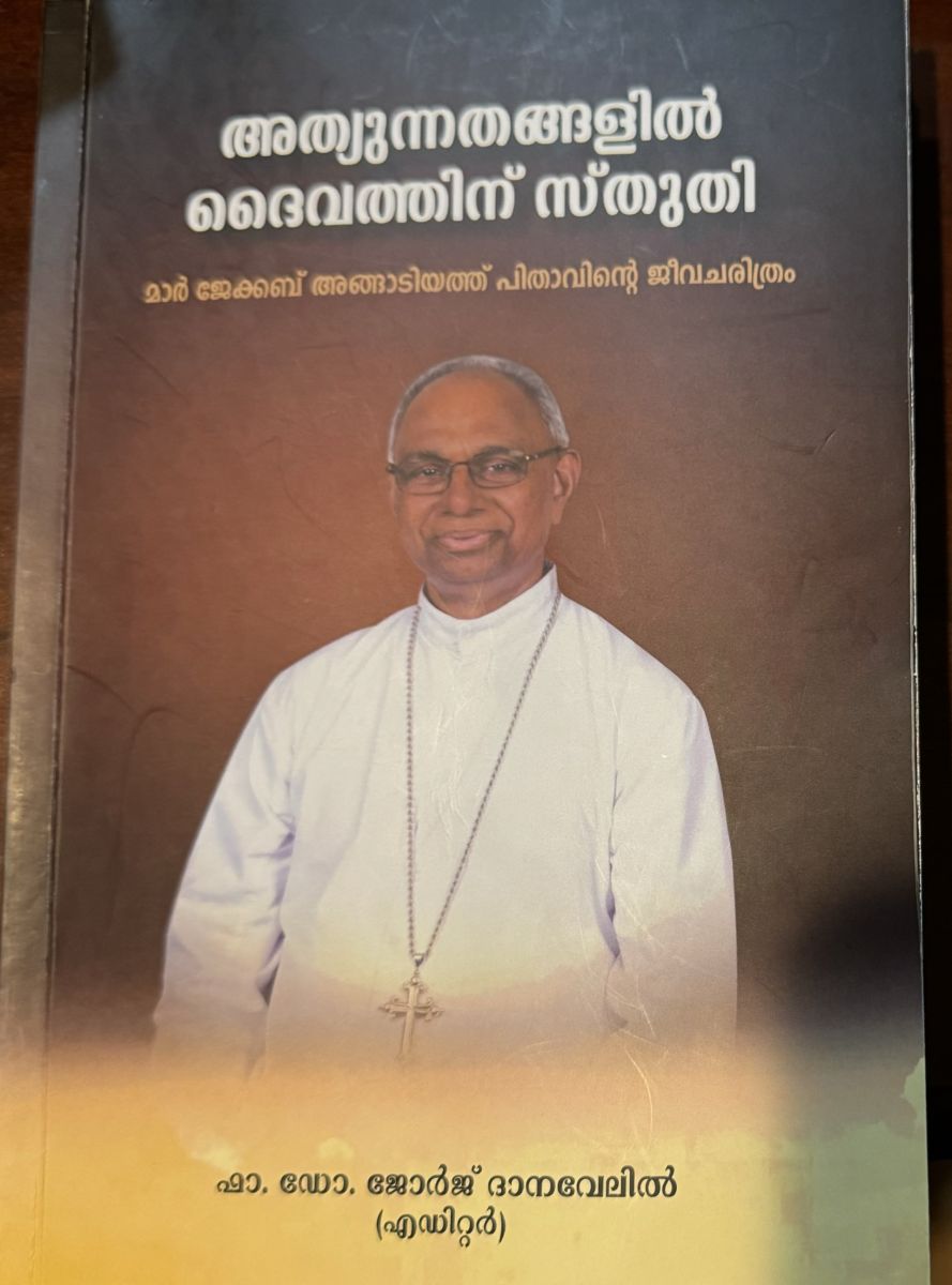 ചിക്കാഗോ സിറോ മലബാർ രൂപതയുടെ പ്രഥമ മെത്രാൻ മാർ ജേക്കബ് അങ്ങാടിയത്തിന്റെ ജീവചരിത്രം "അത്യുന്നതങ്ങളിൽ ദൈവത്തിനു സ്തുതി " ചിക്കാഗോയിൽ നടന്ന സിറോ മലബാർ എപ്പാർക്കിയൽ അസ്സംബ്ലിയിയുടെ സമാപന സമ്മേളത്തിൽ വച്ച് ബിഷപ്പ് മാർ ജോയ് ആലപ്പാട്ട്, സിറോ മലങ്കര രൂപത ബിഷപ്പ് ഫിലിപ്പോസ് മാർ സ്റ്റീഫനോസിന് ആദ്യപ്രതി നൽകി പ്രകാശനം ചെയ്തു.