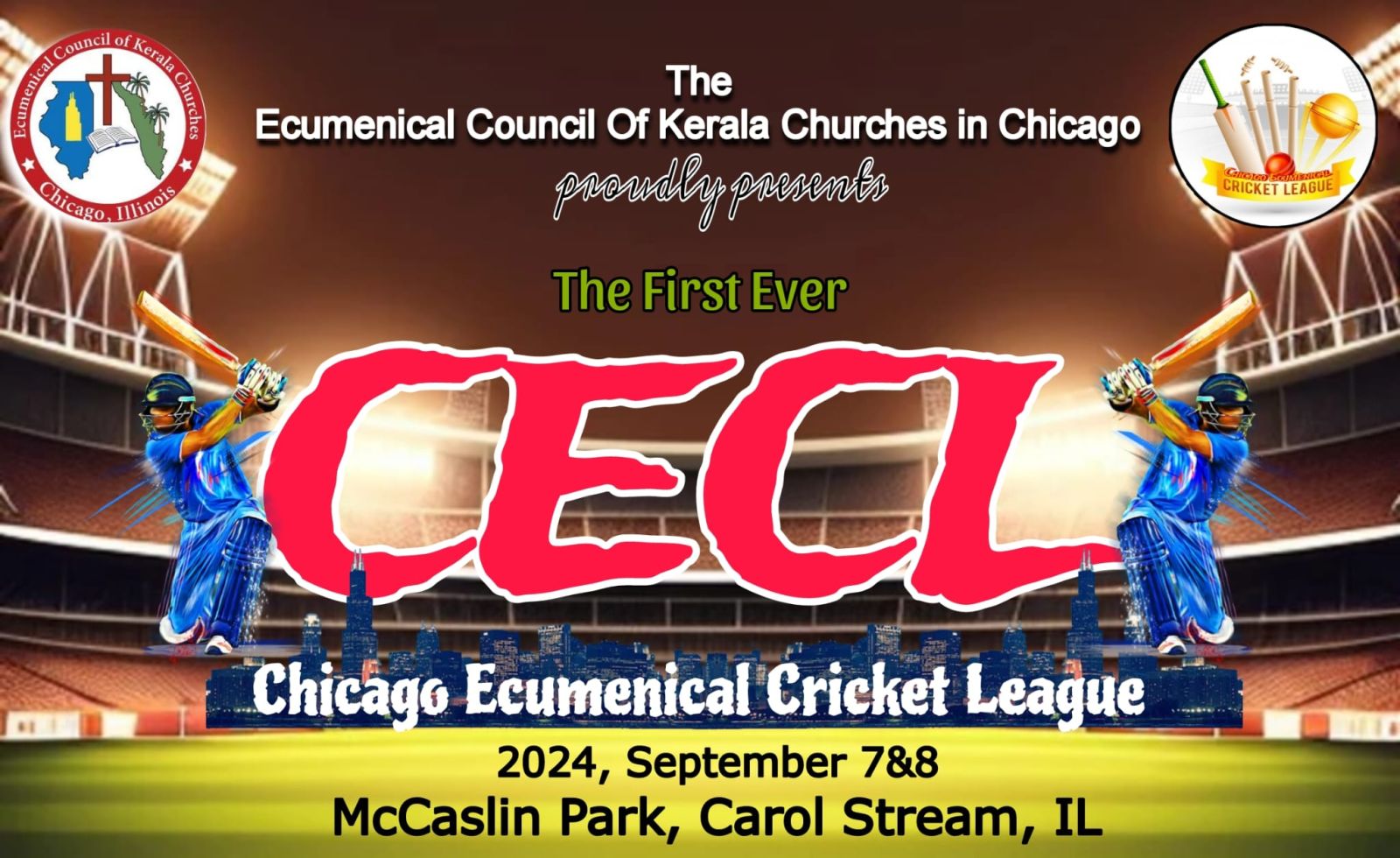 ഇന്റർനാഷണൽ ട്വന്റി ട്വന്റി ലോകകപ്പിന് ശേഷം, അമേരിക്കയുടെ പുൽമൈതാനങ്ങളിൽ ആവേശത്തിന്റെ അലയൊലികൾ നിറയ്ക്കാൻ, ചിക്കാഗോയിലെ എപ്പസ്കോപ്പൽ സഭകളുടെ കൂട്ടായ്മയായ എക്യൂമെനിക്കൽ കൗൺസിൽ ഓഫ് കേരള ചർച്ചസ് അഭിമാനപുരസരം അവതരിപ്പിക്കുന്ന പ്രഥമ ക്രിക്കറ്റ് ടൂർണമെന്റ് 2024 സെപ്റ്റംബർ 7,8 തീയതികളിൽ ചിക്കാഗോ യിൽ ഉള്ള കരോൾ സ്ട്രീം ക്രിക്കറ്റ് ഗ്രൗണ്ടിൽ വച്ച് നടത്തപ്പെടുന്നു.