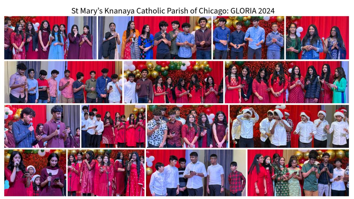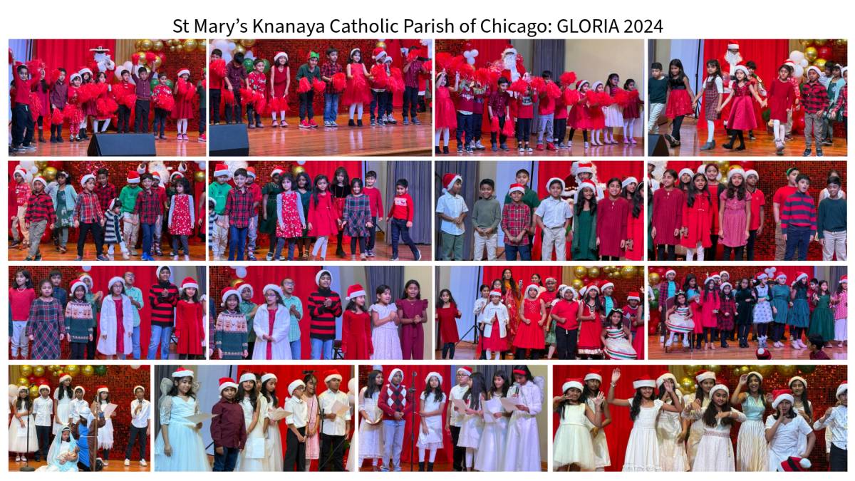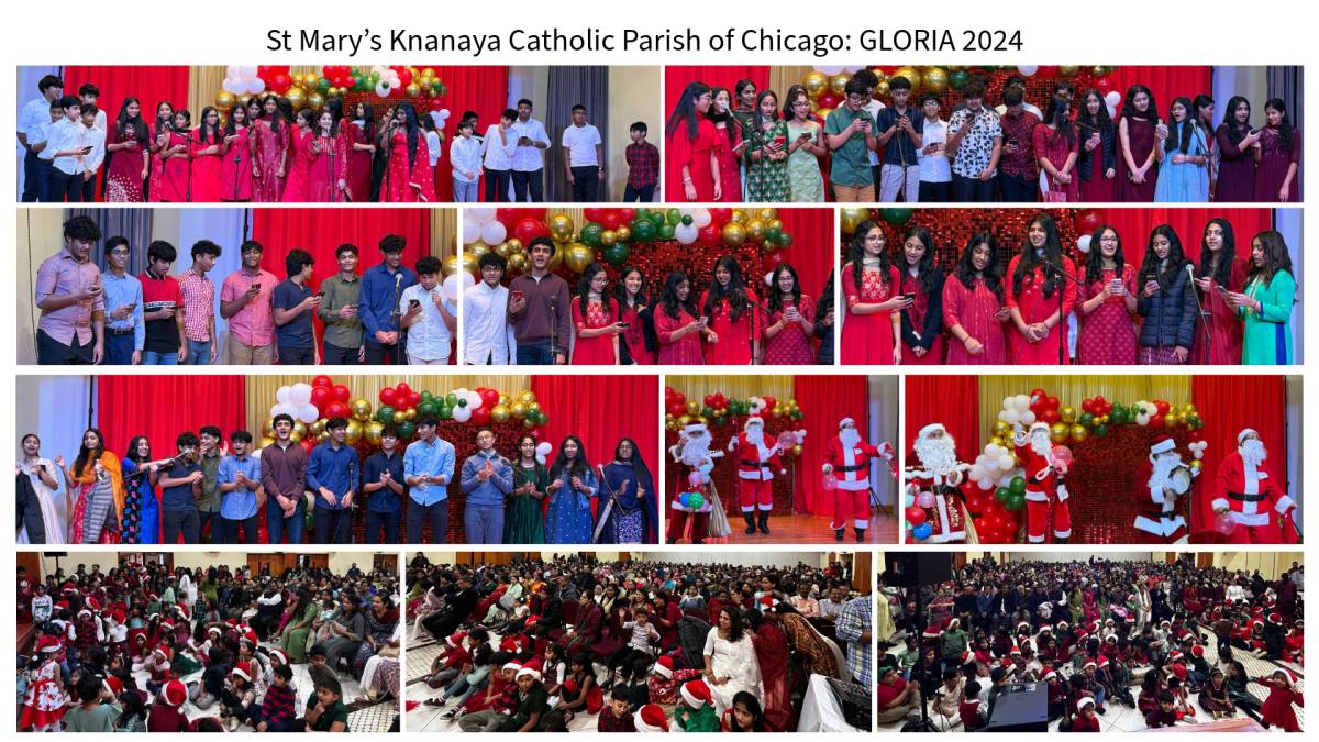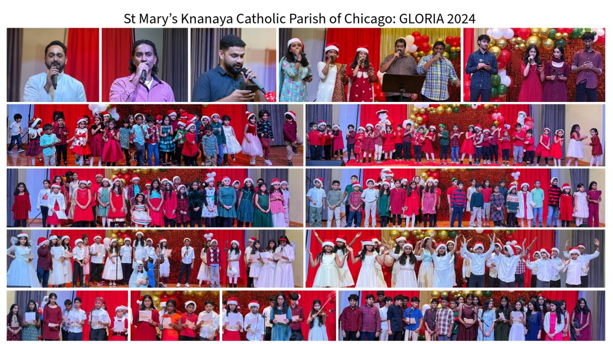 ചിക്കാഗോ: ചിക്കാഗോ സെന്റ് മേരീസ് ക്നാനായ കത്തോലിക്കാ ദൈവാലയത്തിലെ മതബോധന സ്കൂളിന്റെ ആഭിമുഖ്യത്തിൽ ഗ്ലോറിയ 2024 എന്ന പേരിൽ ക്രിസ്മസ് ആഘോഷങ്ങൾ സംഘടിപ്പിച്ചു. സ്കൂളിലെ വിവിധ ക്ലാസ്സുകളുടെ നേതൃത്വത്തിൽ ക്രിസ്മസ് കരോൾ ഒരുക്കിക്കൊണ്ടാണ് ഈ വർഷത്തെ ക്രിസ്മസ് ആഘോഷങ്ങൾ വർണ്ണശബളമാക്കിയത്. മതബോധന സ്കൂളിന്റെ അസിസ്റ്റന്റ് ഡയറക്ടർ മനീഷ് കൈമൂലയിലിന്റെ നേതൃത്വത്തിലുള്ള ടീച്ചേഴ്സും വോളന്റീയേഴ്സും ആഘോഷങ്ങൾക്ക് നേതൃത്വം നൽകി. സെന്റ് മേരീസ് ഗായക സംഘം ഒരുക്കിയ കരോൾ ഗാനങ്ങളും കൂടാരയാഗങ്ങളുടെ ആഭിമുഖ്യത്തിൽ നടത്തപ്പെട്ട ക്രിസ്മസ് പാപ്പാ മത്സരവും ആഘോഷങ്ങൾക്ക് നിറപ്പകിട്ടേകി. വികാരി ഫാ. സിജു മുടക്കോടിയിൽ, സാബു കൈക്കാരന്മാരായ സാബു കട്ടപ്പുറം, ബിനു പൂത്തുറയിൽ, ലൂക്കോസ് പൂഴിക്കുന്നേൽ, ജോർജ്ജ് മറ്റത്തിപ്പറമ്പിൽ, നിബിൻ വെട്ടിക്കാട്ട്, പാരിഷ് കൗൺസിൽ സെക്രട്ടറി സണ്ണി മേലേടം വിസിറ്റേഷൻ സന്ന്യാസ സമൂഹാംഗങ്ങൾ എന്നിവരടക്കമുള്ള പാരിഷ് കമ്മറ്റി ആഘോഷങ്ങളുടെ സജ്ജീകരണങ്ങൾക്ക് ചുക്കാൻ പിടിച്ചു.