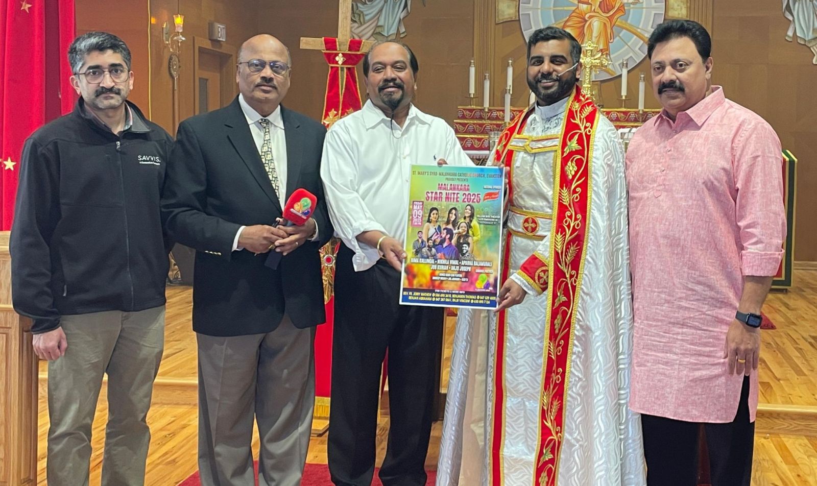 ചിക്കാഗോ: ചിക്കാഗോയിലെ സെന്റ് മേരീസ് മലങ്കര കത്തോലിക്ക ദേവാലയത്തിന്റെ ആഭിമുഖ്യത്തില് നൃത്തസംഗീത വിരുന്നും താരനിശയും (മലങ്കര സ്റ്റാര്നൈറ്റ് 2025) ഈ വരുന്ന മെയ് മാസം 9-ാം തീയതി 7 മണിക്ക് നേപര്വില്ലില് Yellow Box Theator (1635 Emerson Ln, Naperville) നടത്തപ്പെടുന്നു.