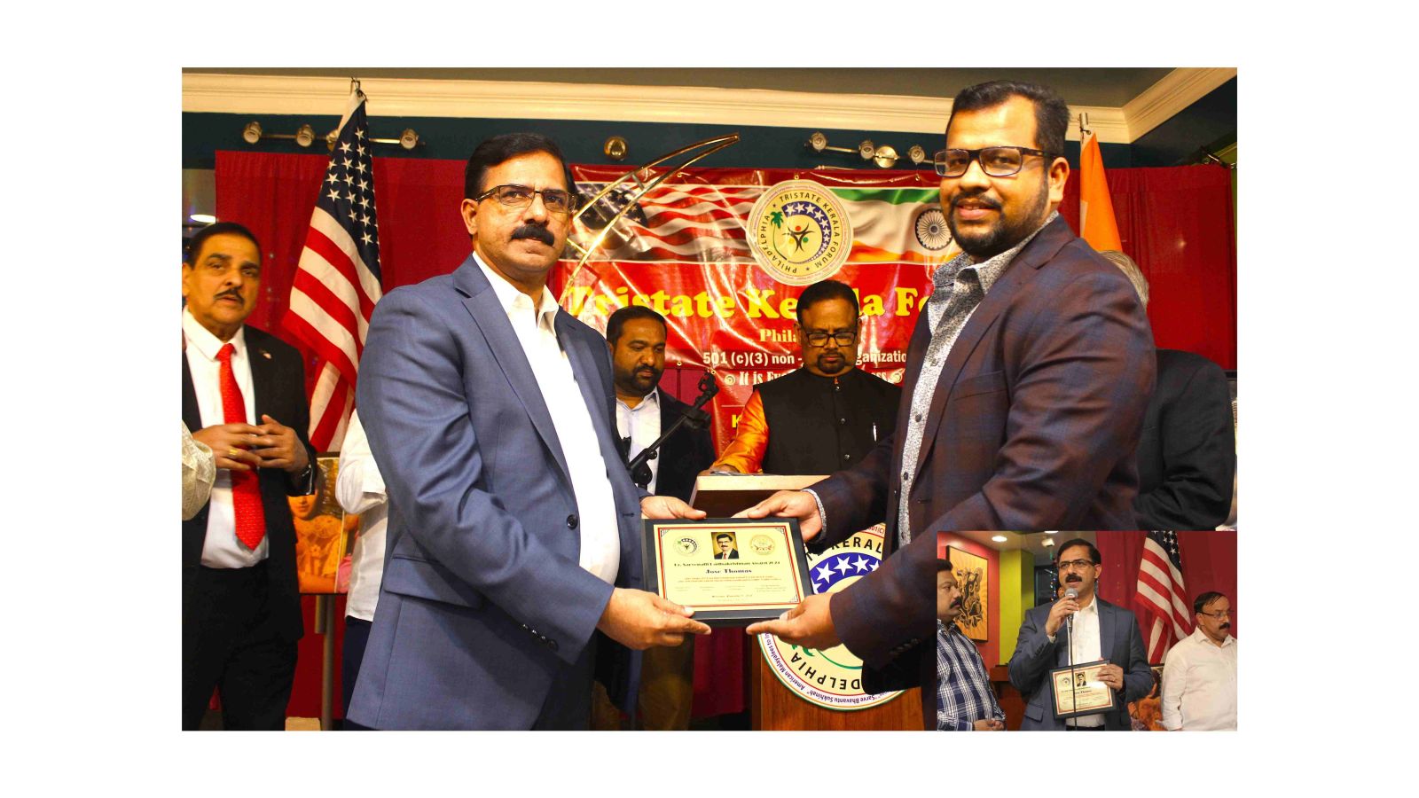ട്രൈസ്റ്റേറ്റ് കേരളാ ഫോറം ചെയർമാൻ അഭിലാഷ് ജോൺ അവാഡ് സമ്മാനം നിർവഹിച്ചു. ട്രൈസ്റ്റേറ്റ് കേരളാ ഫോറം "കേരളം ദിനോത്സവം 24" ചെയർമാൻ ജോർജ് നടവയൽ ആമുഖ പ്രസ്താവന നടത്തി. ട്രൈസ്റ്റേറ്റ് കേരളാ ഫോറം ചെയർമാൻ അഭിലാഷ് ജോൺ അദ്ധ്യക്ഷനായി. ജോയിൻ്റ് സെക്രട്ടറി ജോൺ പണിക്കർ സ്വാഗതവും ജോയിൻ്റ് ട്രഷറാർ രാജൻ സാമുവേൽ നന്ദിയും പറഞ്ഞു. മുതിർന്ന മാദ്ധ്യമ പ്രവർത്തകൻ വിൻസൻ്റ് ഇമ്മാനുവേൽ ആശംസകൾ നേർന്നു പ്രസംഗിച്ചു. സെക്രട്ടറി ബിനു മാത്യൂ, ട്രഷറാർ ഫീലിപ്പോസ് ചെറിയാൻ, ജോർജ് ഓലിക്കൽ, അലക്സ് ബാബു, അൻസു ആലപ്പാട്ട് എന്നിവർ യോഗ ക്രമീകരണങ്ങൾക്ക് നേതൃത്വം നൽകി. ബിസിനസ് പ്രമുഖരായ മണിലാൽ മത്തായി, അറ്റേണി ജോസസഫ് കുന്നേൽ, പമ്പ, കോട്ടയം അസ്സോസ്സിയേഷൻ, ഓർമാ ഇൻ്റർനാഷനൽ, ഫൊക്കാനാ, ഫോമാ, പിയാനോ, തിരുവല്ലാ അസ്സോസ്സിയേഷൻ, റാന്നീ അസ്സോസ്സിയേഷൻ, ഫിലഡൽഫിയാ മലയാള സാഹിത്യ വേദി, ഫിൽമാ, എന്നിങ്ങനെ വിവിധ സംഘടനകളുടെ ഭാരവാഹികളും പ്രവർത്തകരും സന്നിഹിതരായിരുന്നു.