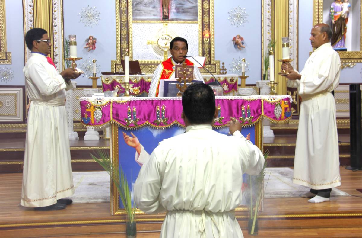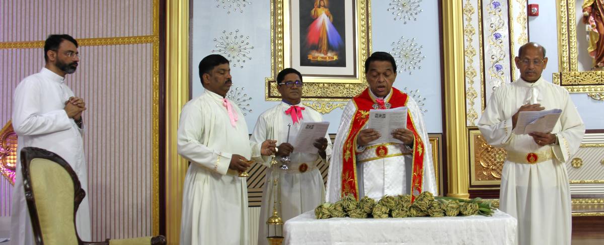 വികാരി ഫാ.എബ്രഹാം മുത്തോലത്ത് , അസിസ്റ്റന്റ് വികാരി ഫാ.ജോഷി വലിയവീട്ടിൽ എന്നിവരുടെ മുഖ്യ കാർമികത്വത്തിൽ തിരുകർമ്മങ്ങൾ ഭക്തി സാന്ദ്രമായി നടത്തപ്പെട്ടു . കുരുത്തോല വിതരണവും വിശുദ്ധ കുർബാനയും, മലയാളത്തിലും, യുവജനങ്ങൾക്കും കുട്ടികൾക്കുമായി ഇംഗ്ലീഷിലും നടത്തപ്പെട്ടു.