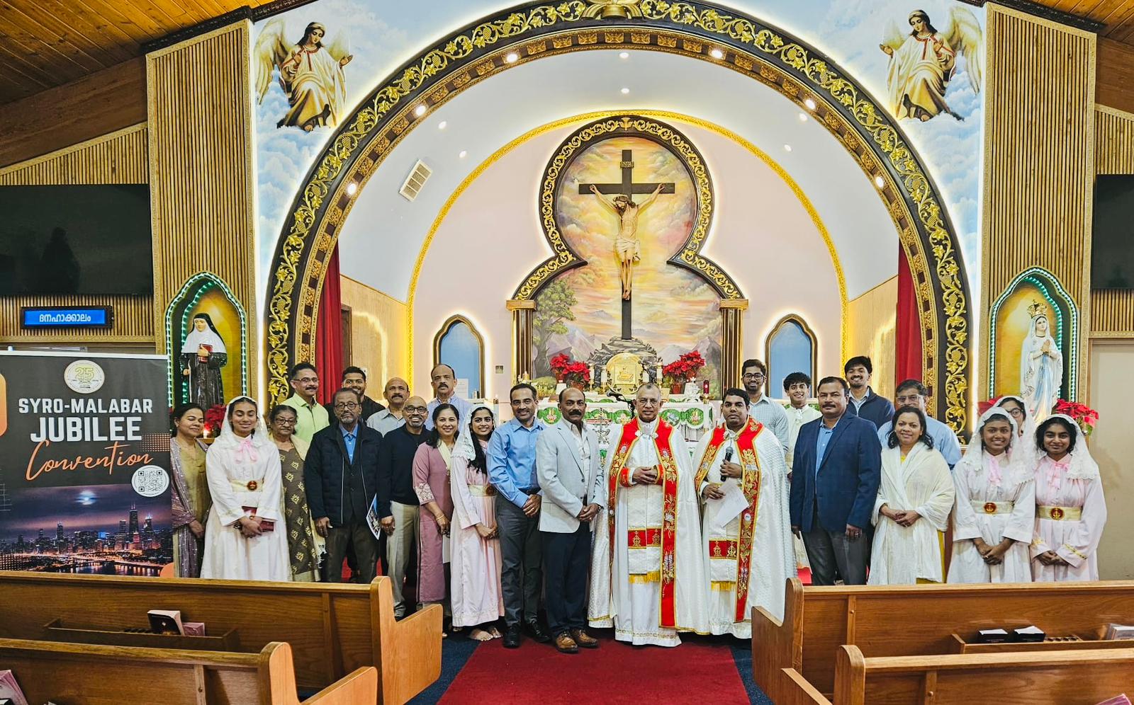 ചിക്കാഗോ: അമേരിക്കയിലെ സീറോ മലബാർ രൂപതയുടെ സിൽവർ ജൂബിലി ആഘോഷങ്ങളുടെ ഭാഗമായി 2026 ജൂലൈ 9 മുതൽ 12 വരെ നടക്കുന്ന ദേശീയ കൺവെൻഷന്റെ പ്രചാരണത്തിനും കിക്കോഫിനുമായി ജൂബിലി കൺവീനർ ഫാ.ജോൺ മേലേപ്പുറത്തിനോടൊപ്പം ബാൻട്ടിമോർ സെൻ്റ് അൽഫോൻസാ സീറോ മലബാർ ദേവാലയം സന്ദർശിച്ച കൺവെൻഷൻ ടീമിന് സ്നേഹപൂർവ്വമായ സ്വീകരണം ഇടവകാംഗങ്ങൾ നൽകി.