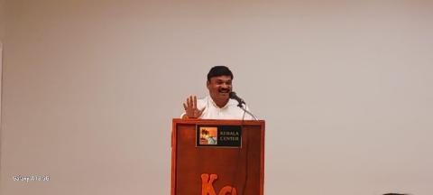 വിജയകൃഷ്ണൻ തന്റെ മറുപടി പ്രസംഗത്തിൽ കോൺസുലേറ്റിലെ ഉദ്യോഗസ്ഥർ എപ്പോഴും പരമാവധി എംബസിയിൽ എത്തുന്നവരെ സഹായിക്കാൻ ശ്രമിക്കാറുണ്ട്..താൻ വ്യക്തിപരമായി വളരെ പൊളറ്റായി സ്നേഹത്തോടെ പെരുമാറിയിട്ടുണ്ട് , ഏതു രാത്രിയിൽ ഫോൺ വിളിച്ചാലും സഹായിക്കാൻ ശ്രമിക്കാറുണ്ട് .. ഗാന്ധിജിയെ പിന്തുടരുന്നു ഒരു വ്യക്തിയയാതുകൊണ്ടു ക്ഷമയും സ്നേഹവും കൈവിടാതെ സൂക്ഷിക്കും ..വയലൻസ് എന്റെ മാർഗ്ഗമല്ലായെന്നു താൻ കരുതുന്നു വിജയകൃഷ്ണൻ തന്റെ മറുപടി പ്രസംഗത്തിൽ പറഞ്ഞു ..പ്രധാന ആഘോഷങ്ങൾ വരുമ്പോൾ ഇന്ത്യൻ സമൂഹം അങ്ങോട്ടും ഇങ്ങോട്ടും സ്റ്റേറ്റ് വ്യത്യാസ മില്ലാതെ പങ്കെടുക്കാൻ ശ്രമിക്കണമെന്ന് അഭ്യർത്ഥിച്ചു .. എല്ലാ സഹകരണത്തിനും ന്യൂയോർക്കിലെ ഇന്ത്യൻ സമൂഹത്തിനോട്കോൺസൽ വിജയകൃഷ്ണൻ നന്ദി പറഞ്ഞു, കേരള സെന്റർ സെക്രെട്ടറി രാജു തോമസ്എല്ലാവര്ക്കും ക്രിതജ്ഞത പറഞ്ഞു. ഡിന്നറോടെ പരിപാടികൾ സമാപിച്ചു