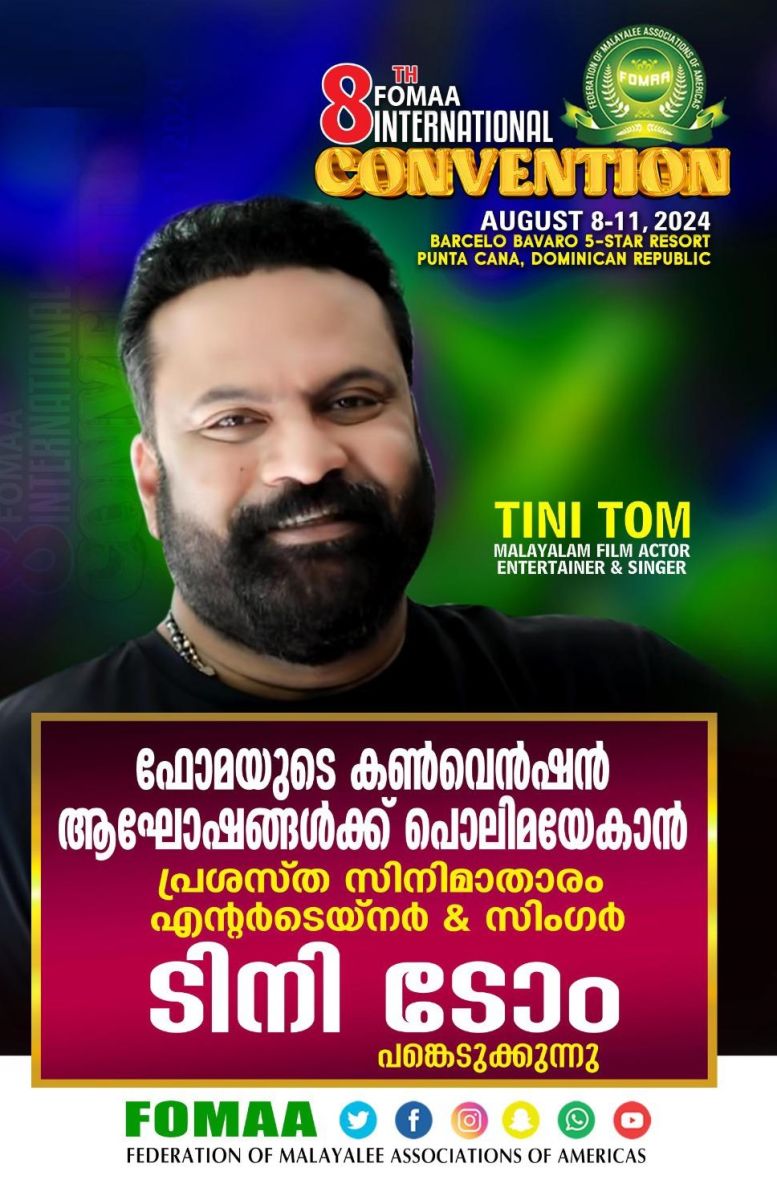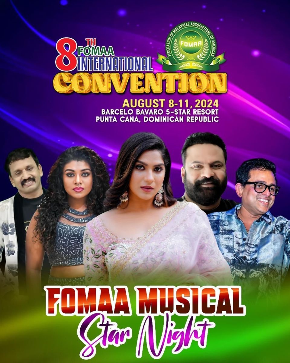 ചിക്കാഗോ : അമേരിക്കൻ മലയാളികളുടെ സംഘടനകളുടെ സംഘടനയായ ഫോമായുടെ അന്തർദ്ദേശീയ കൺവെൻഷന് ഡൊമിനിക്കൻ റിപ്പബ്ലിക്കിൽ ഇന്ന് തുടക്കമാകും . കൺവെൻഷൻ്റെ ഒരുക്കങ്ങൾ പൂർത്തിയായതായി ഫോമാ പ്രസിഡൻ്റ് ഡോ . ജേക്കബ് തോമസ് അറിയിച്ചു. രാഷ്ട്രീയ സാമൂഹിക സാംസ്കാരിക കലാ രംഗത്തെ നിരവധി പ്രമുഖർ പങ്കെടുക്കുന്ന കൺവെൻഷൻ മൂന്ന് ദിവസം നീണ്ടു നിൽക്കും. ഇന്ന് വൈകിട്ട്