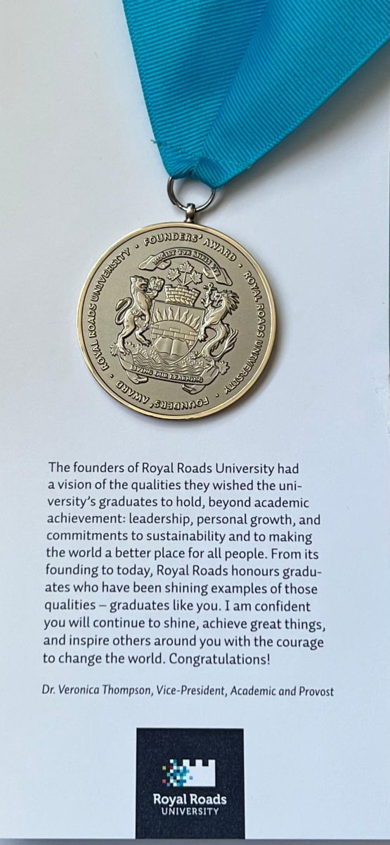 കോട്ടയം വെമ്പള്ളി സ്വദേശിനിയായ കൃഷ്ണപ്രിയ ജയശ്രീയ്ക്കാണ് കാനഡയിലെ ബ്രിട്ടീഷ് കൊളംബിയയിലുള്ള റോയൽ റോഡ്സ് യൂണിവേഴ്സിറ്റിയുടെ ഫൗണ്ടേഴ്സ് അവാർഡ് ലഭിച്ചത്. യൂണിവേഴ്സിറ്റിയിൽ ഗ്ലോബൽ മാനേജ്മെൻ്റ് ബിരുദാനന്തര ബിരുദ വിദ്യാർത്ഥിനി ആയിരുന്നു കൃഷ്ണപ്രിയ.