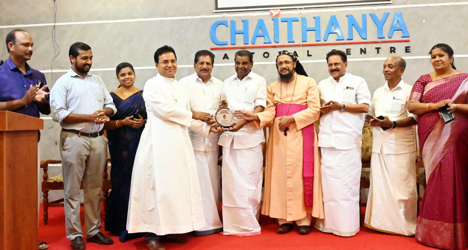 കേരള അസോസ്സിയേഷന് ഓഫ് പ്രൊഫഷണല് സോഷ്യല് വര്ക്കേഴ്സ് കോട്ടയം ചാപ്റ്റര് ഏര്പ്പെടുത്തിയ പ്രൊഫഷണല് എക്സലന്സ് അവാര്ഡ് കോട്ടയം സോഷ്യല് സര്വ്വീസ് സൊസൈറ്റി എക്സിക്യൂട്ടീവ് ഡയറക്ടര് ഫാ. സുനില് പെരുമാനൂരിന് തിരുവഞ്ചൂര് രാധാകൃഷ്ണന് എം.എല്.എ സമ്മാനിക്കുന്നു.