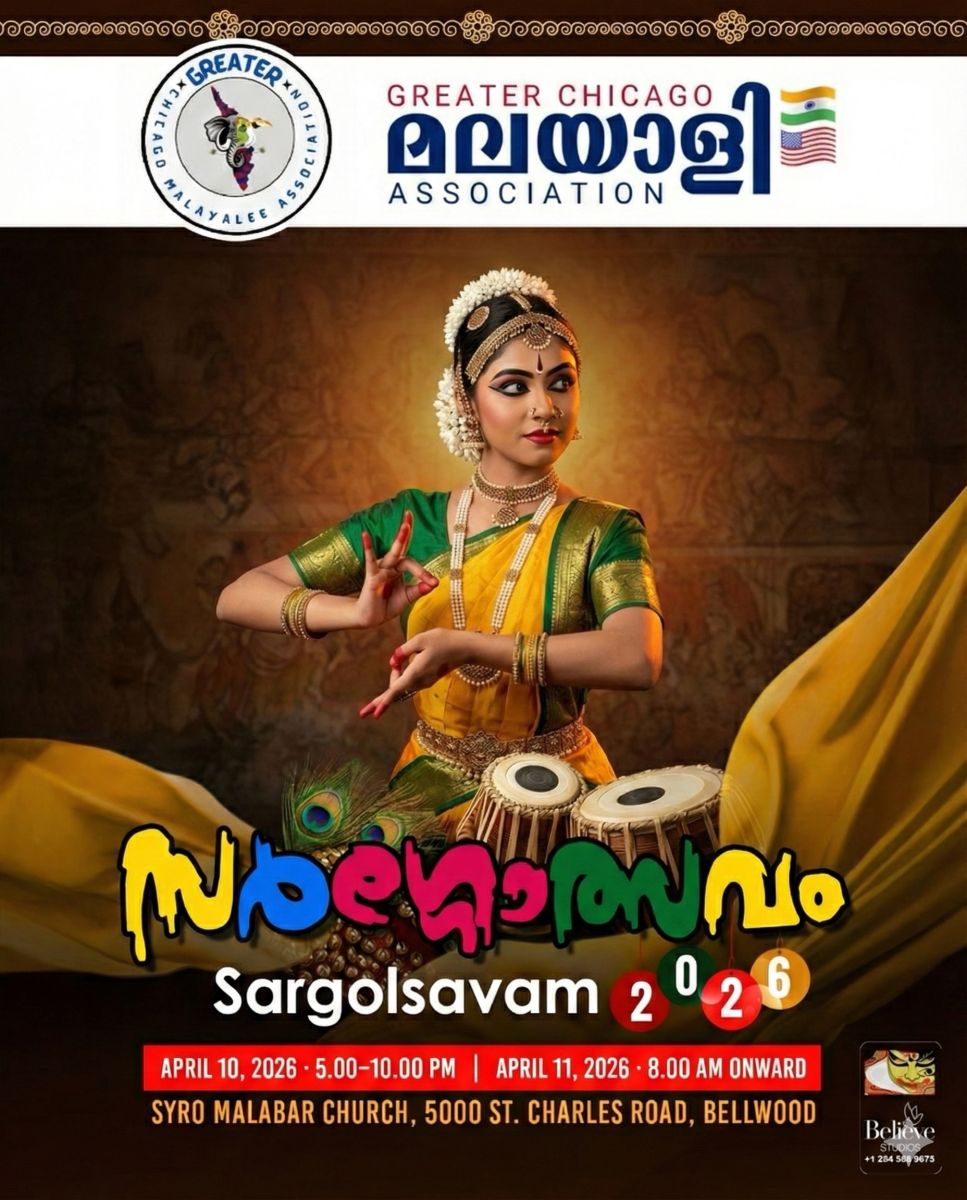 ഒമ്പത് സബ് കമ്മിറ്റികൾ രൂപീകരിച്ചു കൊണ്ട് ഗ്രെയ്റ്റർ ചിക്കാഗോ മലയാളീ അസോസിയേഷൻ ആദ്യമായി നടത്തുന്ന 'സർഗോത്സവം 2026': (SARGOLSAVAM 2026 ) അമേരിക്കൻ മലയാളികൾക്ക് പുതിയ ഒരു അനുഭവമാക്കി മാറ്റുവാൻ യുവജനോത്സവത്തിന്റെ മുന്നൊരുക്കങ്ങൾ വിലയിരുത്തുന്നതിനായി ചേർന്ന ബോർഡ് യോഗം തീരുമാനിച്ചു .യുവജന പങ്കാളിത്തം ഉറപ്പാക്കുന്നതിനായി കുട്ടികളിലും യുവാക്കളിലും കലയും നമ്മുടെ സംസ്കാരവും പ്രോത്സാഹിപ്പിക്കുന്നതിനായി ആണ് വിപുലമായ മത്സരങ്ങളും പരിപാടികളും ആസൂത്രണം ചെയ്യുന്നത്