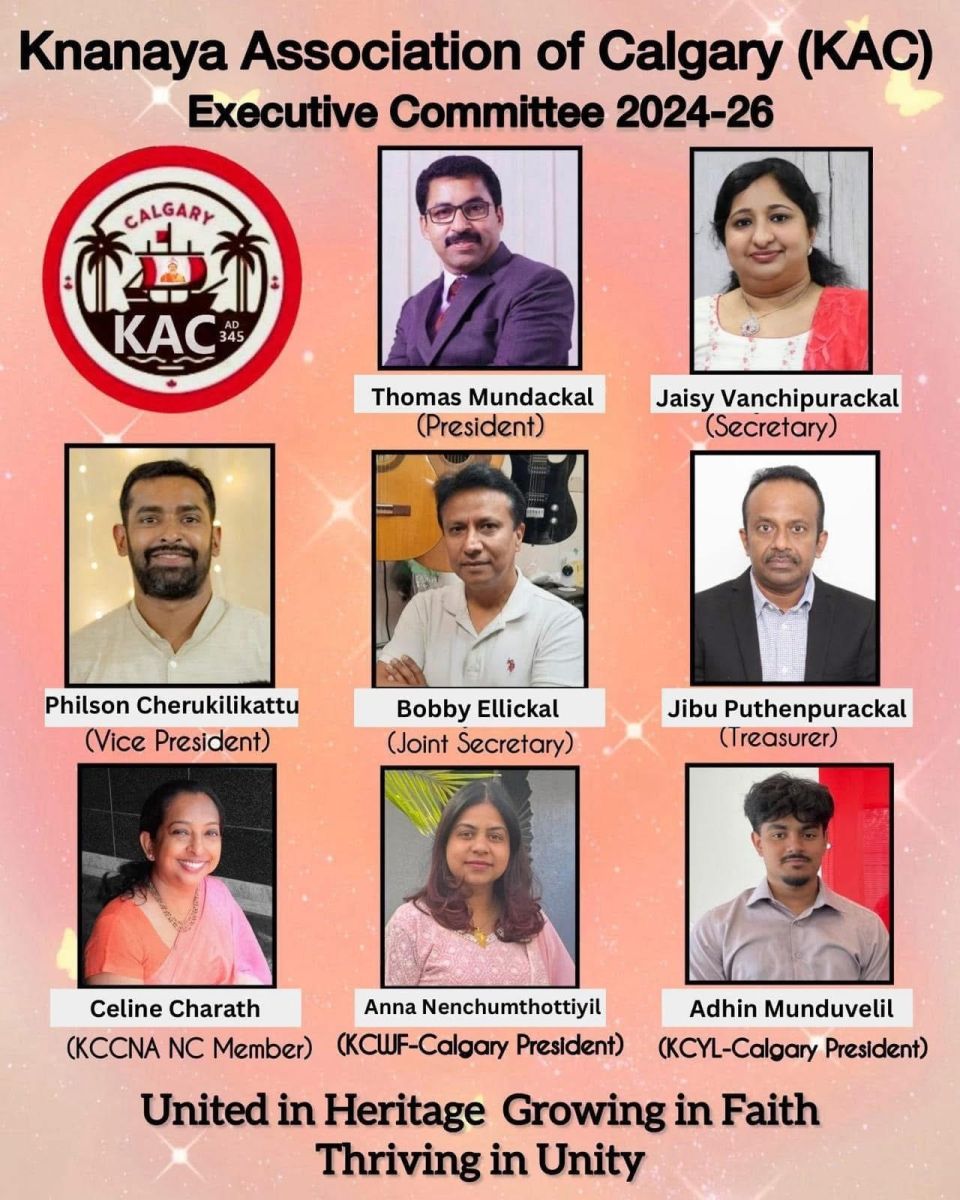 Knanaya Association of Calgary (KAC)'s current Executives - President Thomas Mundackal, Vice- President Philson Cherukilikattu, Secretary Jaisy Vanchipurackal, Joint Secretary Bobby Ellickal, Treasurer Jibu Puthenpurackal, National Council member Celine Charath, Women’s Form President Anna Nenchumthottiyil , KCYL President Mr. Adhin Munduvelil expressed their heartfelt gratitude to the community. They reaffirmed their commitment to preserving and promoting Knanaya traditions, ensuring that future generations remain proud of their heritage while thriving in modern society.