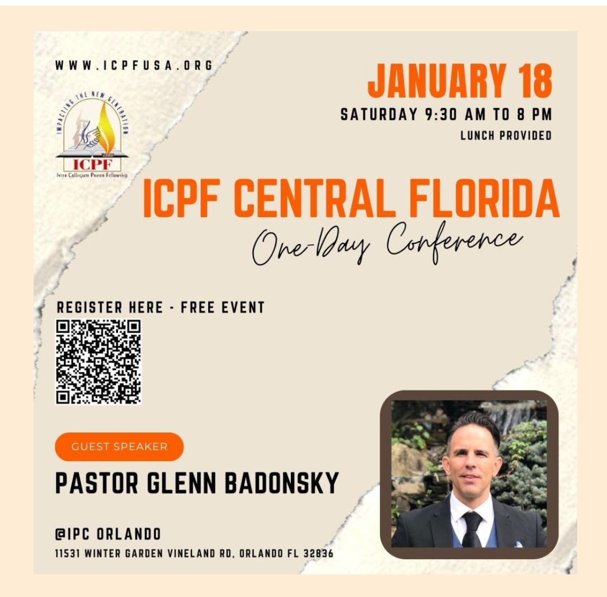 ഫ്ളോറിഡ: ഇന്റർകോളേജിയറ്റ് പ്രയർ ഫെലോഷിപ്പ് (ഐ.സി.പി.എഫ്) ഒരുക്കുന്ന ഏകദിന ക്യാമ്പ് 18 നു ശനിയാഴ്ച രാവിലെ 9 മുതൽ വൈകിട്ട് 8 വരെ ഒർലാന്റോ ഇന്ത്യാ പെന്തക്കോസ്ത് ദൈവസഭയിൽ (Address: 11531 Winter Garden Vineland Rd, Orlando, FL 32836) വെച്ച് നടത്തപ്പെടും. അനുഗ്രഹീത പ്രഭാഷകൻ പാസ്റ്റർ ഗ്ലെൻ ബഡോൺസ്കി കോൺഫ്രൻസിൽ ദൈവവചനം പ്രസംഗിക്കും. പാനൽ ചർച്ചകൾ, ചോദ്യോത്തര സെഷനുകൾ എന്നിവയും ഉണ്ടായിരിക്കും.