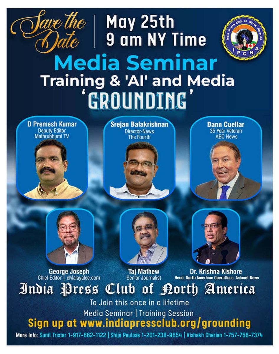 ന്യൂയോർക്ക് : ഇന്ത്യ പ്രസ് ക്ലബ് ഓഫ് നോർത്ത് അമേരിക്ക(ഐപിസിഎൻഎ ) ഓൺലൈൻ മാധ്യമ സെമിനാർ സംഘടിപ്പിച്ചു. മാതൃഭൂമി ഡെപ്യൂട്ടി എഡിറ്റർ ഡി.പ്രമേഷ്കുമാർ, ദി ഫോർത്ത് മലയാളം ചാനൽ ന്യൂസ് ഡയറക്ടർ ശ്രീജൻ ബാലകൃഷ്ണൻ, ഇ-മലയാളി ചീഫ് എഡിറ്റർ ജോർജ് ജോസഫ്, മുതിർന്ന മാധ്യമ പ്രവർത്തകൻ താജ് മാത്യു, ഏഷ്യാനെറ്റ് ന്യൂസ് നോർത്ത് അമേരിക്കൻ ഓപ്പറേഷൻസ് ഹെഡ് കൃഷ്ണ കിഷോർ, ഐപിസിഎൻഎ അഡ്വൈസറി ബോർഡ് ചെയർമാൻ സുനിൽ തൈമറ്റം, വൈസ് പ്രസിഡന്റ് അനിൽ ആറന്മുള,ജോയിന്റ് ട്രഷറർ റോയി മുളങ്കുന്നം എന്നിവർ സംസാരിച്ചു. ജോയിന്റ് സെക്രട്ടറി ആശാ മാത്യു മോഡറേറ്ററായിരുന്നു. സെക്രട്ടറി ഷിജോ പൗലോസ്,ട്രഷറർ വിശാഖ് ചെറിയാൻ എന്നിവർ സെമിനാർ സംഘാടനത്തിന് നേതൃത്വം വഹിച്ചു.