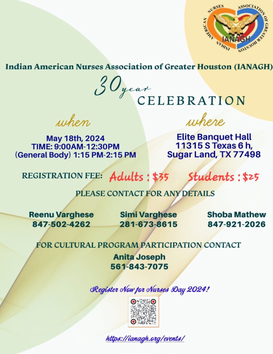 ഹൂസ്റ്റൺ: അമേരിക്കയിലെ ഏറ്റവും പ്രമുഖ സംഘടനകളിലൊന്നായ ഇന്ത്യൻ നഴ്സസ് അസ്സോസിയേഷൻ ഓഫ് ഗ്രെയ്റ്റർ ഹൂസ്റ്റൺന്റെ (IANAGH) 30 - മത് വാർഷികാഘോഷ പരിപാടികൾക്കു മെയ് 18 ശനിയാഴ്ച തുടക്കം കുറിക്കും. അന്ന് രാവിലെ 9 മുതൽ ആരംഭിക്കുന്ന പരിപാടികൾ ജനറൽ ബോഡി യോഗത്തോടെ 2.15 നു സമാപിക്കും. ഷുഗർലാന്റിലെ എലൈറ്റ് ബാങ്ക്വറ്റ് ഹാളിൽ (11314, S.Texas 6 h, Sugarland, TX 77498) വച്ചാണ് സമ്മേളനം സംഘടിപ്പിച്ചിരിക്കുന്നത്.