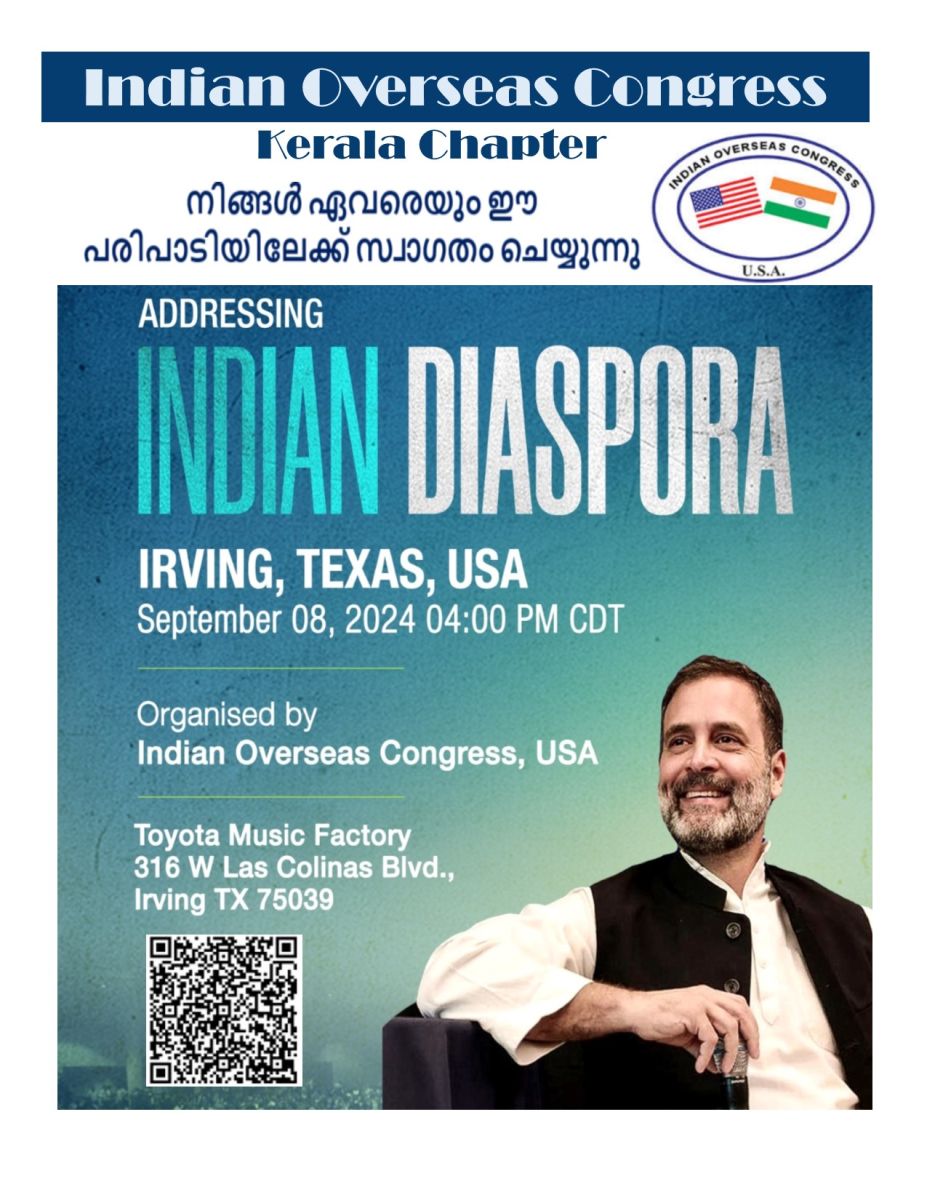 ചിക്കാഗോ: ഇന്ത്യന് ഓവര്സീസ് കോണ്ഗ്രസ് രാഹുല് ഗാന്ധിയെ അമേരിക്കയിലേക്ക് സ്വാഗതം ചെയ്യുന്നു. ഡാളസ്സിലും വാഷിങ്ടണ് ഡിസിയിലും വിവിധ പരിപാടികളില് പങ്കെടുത്ത് സംസാരിക്കുന്നതാണ്. കോണ്ഗ്രസ് പാര്ട്ടിയുടെ കരുത്തനായ നേതാവ് എന്നതിലുപരി ഇപ്പോള് അദ്ദേഹം ലോക്സഭയിലെ പ്രതിപക്ഷനേതാവ് കൂടിയാണ്.