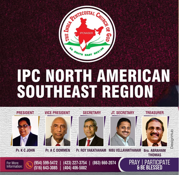 ഫ്ളോറിഡ: ഐ.പി.സി നോർത്ത് അമേരിക്കൻ സൗത്ത് ഈസ്റ്റ് റീജിയൻ രജത ജൂബിലി കൺവൻഷന്റെ വിജയകരമായ നടത്തിപ്പിനായി, വിവിധ സംസ്ഥാനങ്ങളിൽ നിന്നുമുള്ള പ്രാർത്ഥനാ സഹകാരികളെ പങ്കെടുപ്പിച്ചുകൊണ്ട് പ്രയർലൈൻ പ്രവർത്തനം ആരംഭിക്കുന്നു. പ്രാർത്ഥനാ വിഷയങ്ങൾക്കായുള്ള പ്രയർ ലൈൻ ഉത്ഘാടനം ഏപ്രിൽ 7 തിങ്കളാഴ്ച വൈകിട്ട് 8 മുതൽ 9 വരെ [ഈസ്റ്റേൺ ടൈം] ഉണ്ടായിരിക്കുമെന്ന് റീജിയൻ പ്രസിഡന്റ് പാസ്റ്റർ കെ.സി ജോൺ അറിയിച്ചു.