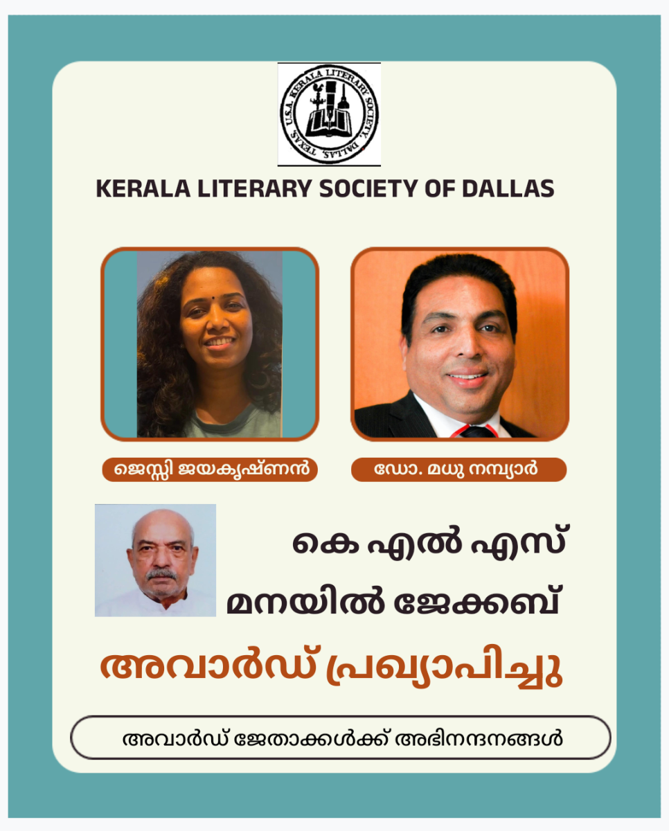 കേരള ലിറ്ററീ സൊസൈറ്റി ഡാളസ് ഏർപ്പെടുത്തിയ മഹാകവി ജേക്കബ് മനയിൽ സ്മാരക കവിത അവാർഡ് ശ്രീമതി ജെസി ജയകൃഷ്ണന്റെ "നഷ്ട്ടാൾജിയ" എന്ന കവിതയ്ക്ക് ലഭിച്ചു. പ്രശസ്ത മലയാള കവി സെബാസ്റ്റ്യൻ ജൂറിയായ അവാർഡ് കമ്മിറ്റിയാണ് "നഷ്ട്ടാൾജിയ". തിരഞ്ഞെടുത്തത്.