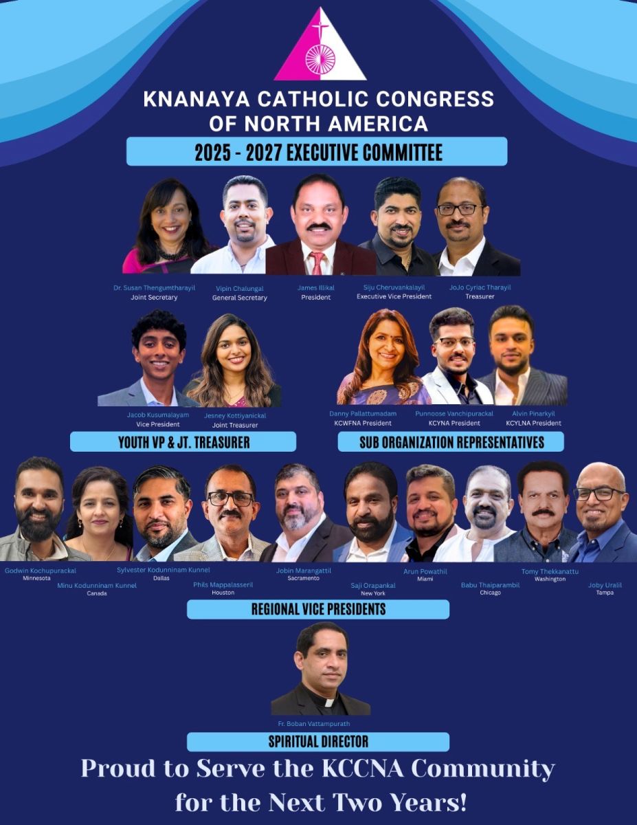 ഡാളസ് :ക്നാനായ കാത്തലിക് കോൺഗ്രസ് ഓഫ് നോർത്ത് അമേരിക്ക (കെ.സി സി.എൻ .എ ) യുടെ അടുത്ത രണ്ടു വർഷത്തേക്കുള്ള പ്രവർത്തന പരിപാടികൾക്കുള്ള രൂപരേഖ തയ്യാറാക്കി വരുന്നതായി പ്രസിഡന്റ് ജെയിംസ് ഇല്ലിക്കലും ജനറൽ സെക്രട്ടറി വിപിൻ ചാലുങ്കലും അറിയിച്ചു. ന്യൂയോർക്കിൽ നിന്നുള്ള ജേക്കബ് കുസുമാലയത്തെ (യൂത്ത് നോമിനി) വൈസ് പ്രസിഡണ്ടായും അറ്റ്ലാന്റയിൽ നിന്നുള്ള ജെസ്നി കൊട്ടിയാനിക്കൽ ജോയിന്റ് ട്രെഷറായും ആദ്യത്തെ എക്സിക്യൂട്ടീവ് കമ്മിറ്റി നോമിനേറ്റ് ചെയ്തു.