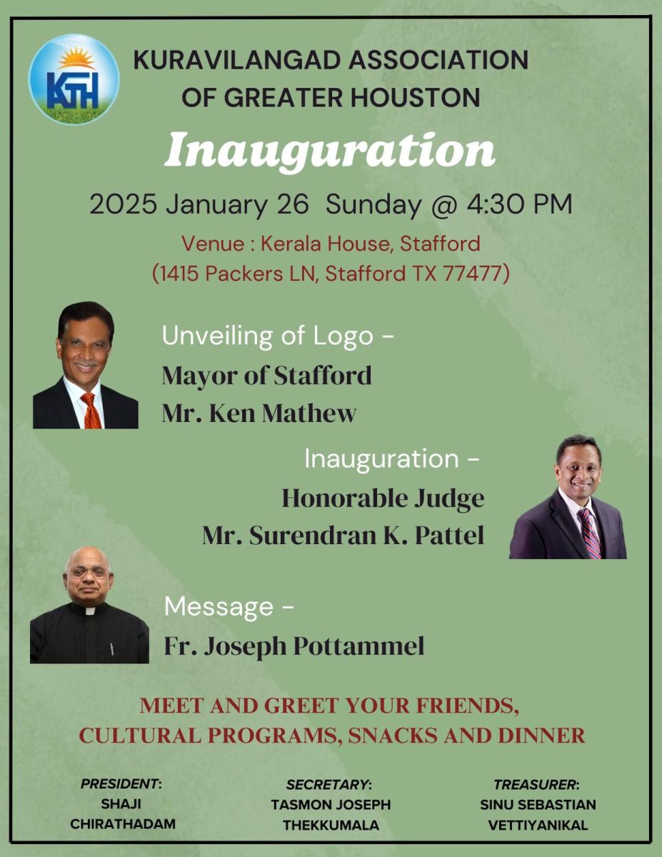 സ്റ്റാഫോഡ് കേരളാ ഹൗസിൽ വച്ചു നടക്കുന്ന പരിപാടിയിൽ ഡിസ്ട്രിക്ട് ജഡ്ജ് സുരേന്ദ്രൻ പട്ടേൽ ഉദ്ഘാടനം നിർവഹിക്കുന്നതും സ്റ്റാഫോഡ് സിറ്റി മേയർ കെൻ മാത്യു ലോഗോ പ്രകാശനം നടത്തുന്നതുമാണ്.