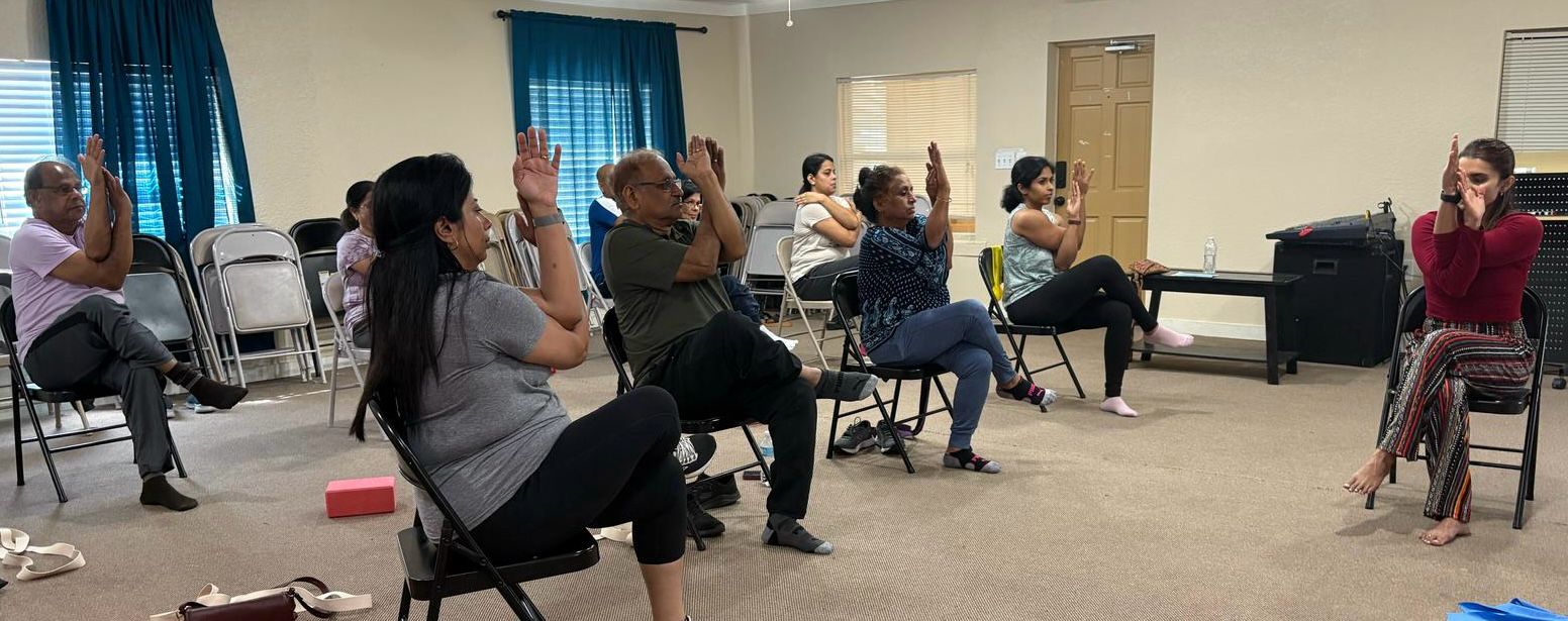 ചെയർ യോഗ – ആരോഗ്യ സംരക്ഷണത്തിന്റെ ഭാഗമായി സിമി പോത്തൻ മാസത്തിലൊരിക്കൽ സംഘടിപ്പിക്കുന്ന യോഗാ സെഷൻ, ശാരീരികവും മാനസികവുമായ ശാന്തിയും ആരോഗ്യവും നൽകുന്ന മികച്ച പരിപാടിയായി മാറി.