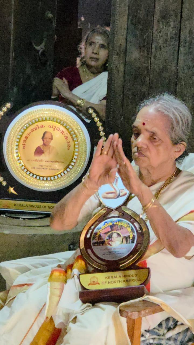 മെയ് 17ന് ശനിയാഴ്ച മണ്ണാറശാല ക്ഷേത്രാങ്കണത്തിൽ നടന്ന ചടങ്ങിൽ കെ എച് എൻ എ ട്രസ്റ്റീ ബോർഡ് ചെയർമാൻ ഗോപിനാഥ കുറുപ്പ് പുരസ്കാരം അമ്മക്ക് കൈമാറി. അമ്മക്ക് സംഘടനയുടെ ദക്ഷിണയായി ഒരുലക്ഷം രൂപ കെ എച് എൻ എ മുൻ പ്രസിഡന്റ് ഡോ. രാമദാസ് പിള്ള അമ്മയുടെ കൈകളിൽ സമർപ്പിച്ചു. കെ എച് എൻ എ യുടെ സ്ഥാപക പ്രസിഡണ്ട് മന്മഥൻ നായർ, ഗുരുവായൂർ ദേവസ്വം ബോർഡ് മെമ്പർ എൻ എസ് എസ് ഡയറക്ടർ ബോർഡ് മെമ്പർ എന്നീ നിലകളിൽ പ്രവർത്തിക്കുന്ന അഡ്വ. ജി മധുസൂദനൻ പിള്ള, കെ എച് എൻ എ ജോയിന്റ് സെക്രട്ടറി ആതിര സുരേഷ്, ബോർഡ് അംഗം ഡോ. ബിജു പിള്ള,