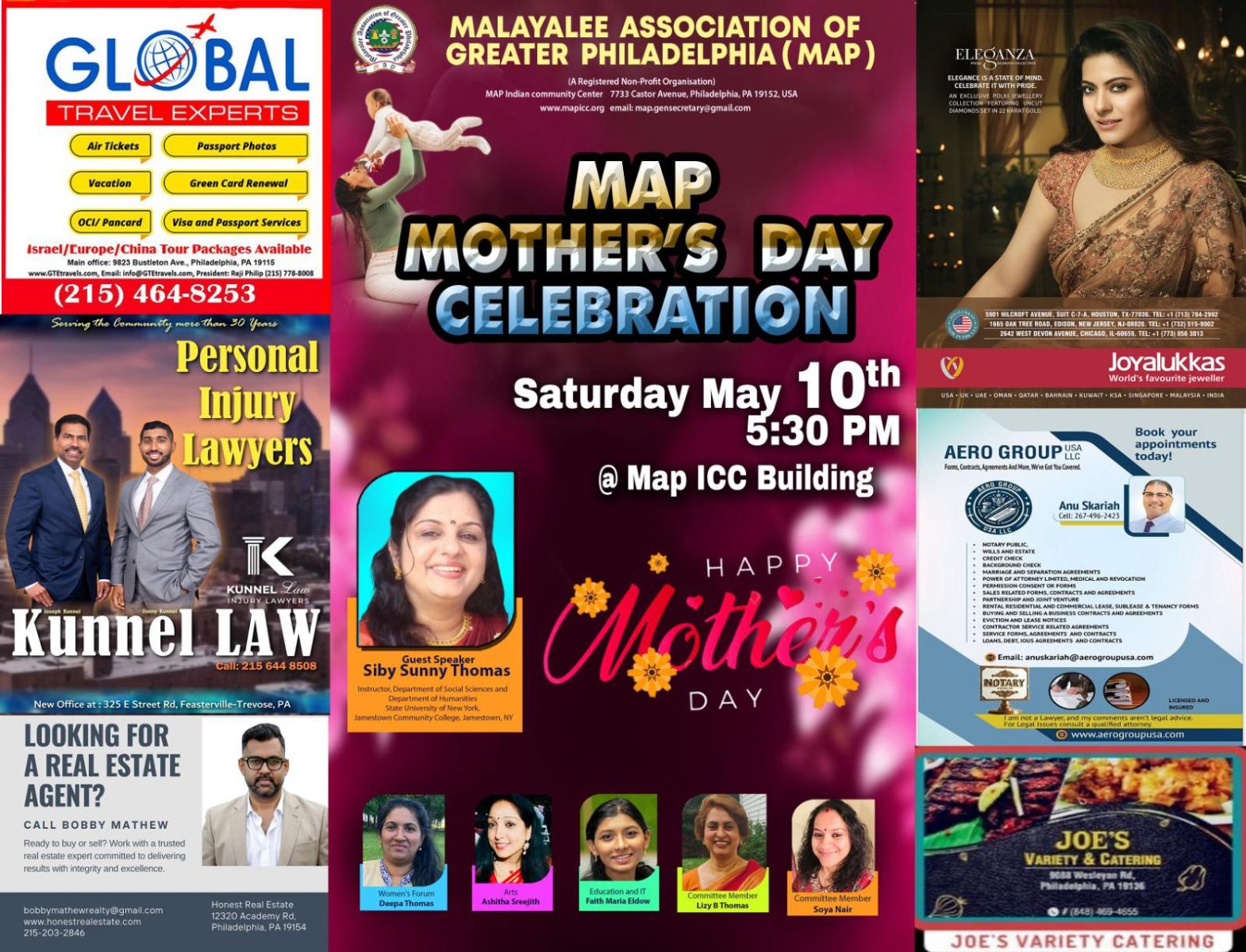 ഫിലഡൽഫിയാ: മലയാളി അസോസിയേഷൻ ഓഫ് ഗ്രേറ്റർ ഫിലഡൽഫിയായുടെ (മാപ്പ്) ആഭിമുഖ്യത്തിൽ എല്ലാ വർഷവും വിപുലമായ രീതിയിൽ നടത്തിവരാറുള്ള 'മാപ്പ് മദേഴ്സ് ഡേ ആഘോഷം' മെയ് 10 ന് ശനിയാഴ്ച വൈകീട്ട് 5 :30 ന് മാപ്പ് ഇന്ത്യൻ കമ്മ്യൂണിറ്റി സെൻ്ററിൽ വച്ച് വിപുലമായ പരിപാടികളോടുകൂടി നടത്തപ്പെടുന്നു. (7733 Castor Ave, Philadelphia, PA 19152)