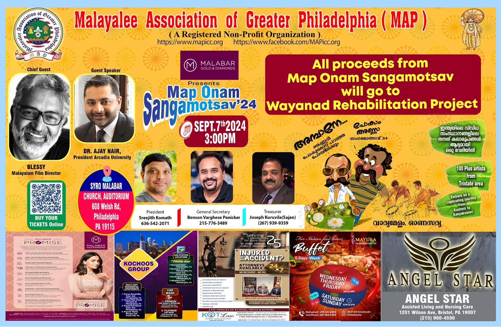 മലയാളി അസോസിയേഷൻ ഓഫ് ഗ്രേറ്റർ ഫിലഡൽഫിയ അണിയിച്ചൊരുക്കുന്ന ഈ വർഷത്തെ ഏവരും ആകാംഷയോടെ കാത്തിരിക്കുന്ന ഓണാഘോഷത്തിന്റെ ഒരുക്കങ്ങൾ ചിട്ടയായ രീതിയിൽ പുരോഗമിക്കുന്നതായി മാപ്പ് എക്സ്ർക്യൂട്ടീവ്സ് അറിയിച്ചു.