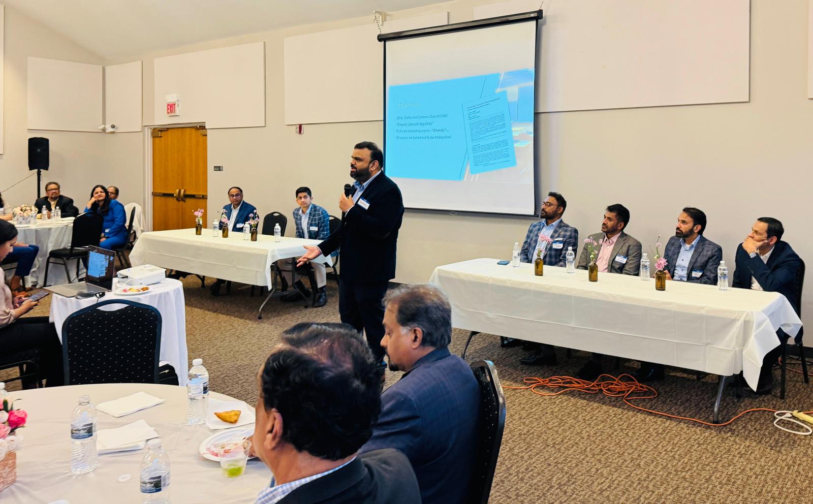 വൈകുന്നേരത്തെ മീറ്റ് ആന്റ് ഗ്രീറ്റ് പരിപാടിയിൽ രണ്ട് പ്രമുഖ അതിഥി സ്പീക്കേഴ്സ് ഉണ്ടായിരുന്നു. ഷിക്കാഗോ യൂണിവേഴ്സിറ്റിയിലെ അസിസ്റ്റന്റ് ഇൻസ്ട്രക്ഷണൽ പ്രൊഫസർ ഡോ. സുഹൈൽ റഹ്മാൻ, കമ്പ്യൂട്ടർ സയൻസ് മേഖലയിൽ ആദ്യകാല മലയാളി കുടിയേറ്റ എഞ്ചിനീയർമാർ നടത്തിയിട്ടുള്ള നിർണായക സംഭാവനകളെക്കുറിച്ച് ആകർഷകമായ അവതരണം നടത്തി.