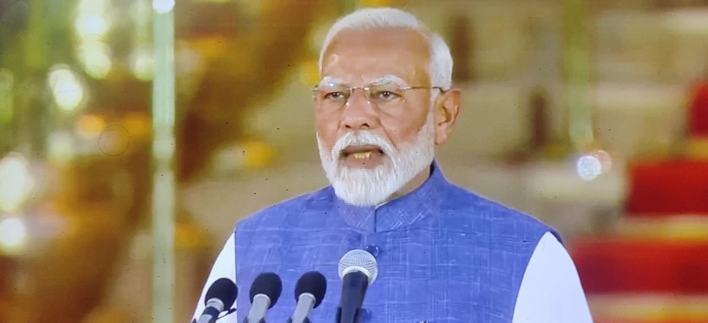 മൂന്നാം തവണയും പ്രധാനമന്ത്രിയായി സത്യപ്രതിജ്ഞ ചെയ്ത് നരേന്ദ്ര മോദി. രാഷ്ട്രപതി ഭവനിലെ ചടങ്ങിൽ വിവിധ മേഖലകളിലെ പ്രമുഖർ പങ്കെടുത്തു. മാലദ്വീപ് പ്രസിഡന്റ് മുഹമ്മദ് മുയ്സുവും ബംഗ്ലാദേശ് പ്രധാമന്ത്രി ഷെയ്ഖ് ഹസീനയും സത്യപ്രതിജ്ഞാ ചടങ്ങിൽ പങ്കെടുക്കാനെത്തിയിട്ടുണ്ട്. രാജ്യസഭ പ്രതിപക്ഷ നേതാവ് മല്ലികാർജ്ജുൻ ഖാർഗെയും ബോളിവുഡ് സിനിമാ താരങ്ങളും സത്യപ്രതിജ്ഞ ചടങ്ങിൽ പങ്കെടുന്നുണ്ട്. ഷാരൂഖ് ഖാൻ, അക്ഷയ് കുമാർ, അനില് കുമാർ എന്നിവരും