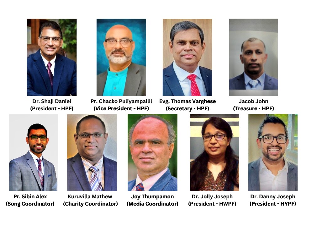 ഈ വര്ഷത്തെ ഭാരവാഹികളായി പ്രസിഡണ്ട് ഡോ. ഷാജി ഡാനിയേല്, വൈസ് പ്രസിഡണ്ടായി പാസ്റ്റര് ചാക്കോ പുളിയംപ്പള്ളില്, സെക്രട്ടറി തോമസ് വര്ഗീസ്, ട്രഷറര് ജേക്കബ് ജോണ്, സോംഗ് കോ-ഓര്ഡിനേറ്റര് പാസ്റ്റര് സിബിന് അലക്സ്, ചാരിറ്റി കോ-ഓര്ഡിനേറ്റര് കുരുവിള മാത്യു, മീഡിയ കോ-ഓര്ഡിനേറ്റര് ജോയി തുമ്പമണ് എന്നിവരെ തെരഞ്ഞെടുത്തു.