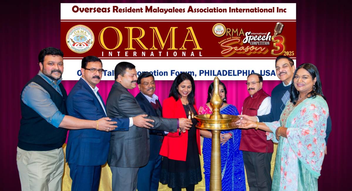 ലോകമലയാളികളെ ഒരു കുടക്കീഴില് അണി നിരത്തുന്ന ഓവർസീസ് റസിഡൻ്റ് മലയാളീസ് അസോസിയേഷന് (ORMA) അഥവാ 'ഓര്മ്മ ഇൻറർനാഷണൽ’ സംഘടിപ്പിച്ച ഇന്ത്യൻ റിപ്പബ്ലിക്ക് ദിനാഘഷങ്ങളോടനുബന്ധിച്ച്, രണ്ടായിരത്തി ഇരുപത്തിയഞ്ചിലെ പ്രവർത്തനോദ്ഘാടനവും, അന്താരാഷ്ട്ര പ്രസംഗ മത്സരത്തിൻ്റെ മൂന്നാം സീസൺ കിക്ക് ഓഫും സംയുക്തമായി ഫിലാഡെൽഫിയായിൽ ആഘോഷപൂർവ്വം നടത്തപ്പെട്ടു. ഹോളി ഫാമിലി യൂണിവേഴ്സിറ്റി അക്കാദമിക് അഫ്യേഴ്സ് വൈസ് പ്രസിഡൻ്റ് ഡോ. ബിന്ദു ആലപ്പാട്ട് ഭദ്രദീപം കൊളുത്തി ഉദ്ഘാടനം നിർവഹിച്ച ചടങ്ങിൽ ഫിലാഡൽഫിയയിലെ വിവി ധ സാമൂഹിക സാംസ്കാരിക സംഘടനാ നേതാക്കൾ, ഓർമയുടെ സ്പോൺസേർസ്, അഭ്യുദയകാംക്ഷികൾ, മാധ്യമ പ്രവർത്തകർ എന്നിവർ പങ്കെടുത്തു.