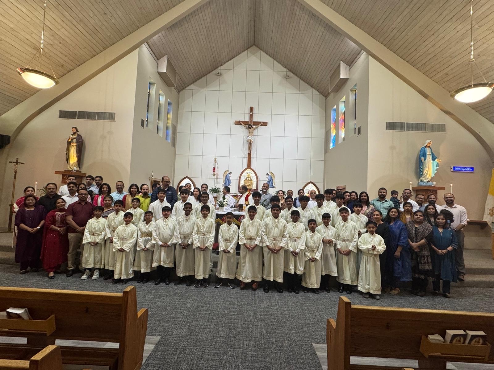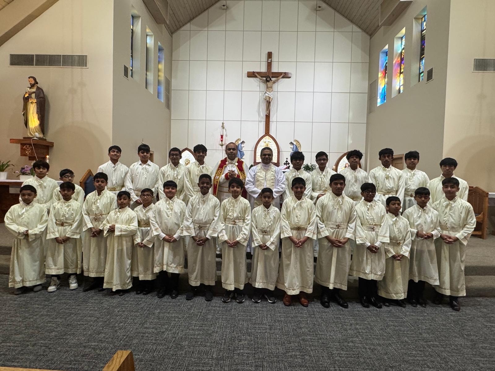 ചിക്കാഗോ: ബെൻസൻവിൽ തിരുഹൃദയ ക്നാനായ കത്തോലിക്കാ ഫോറാനാദേവാലയത്തിൽ അൾത്താരശുശ്രൂഷകർ പ്രാർത്ഥനയോടെ തിരുഹൃദയത്തണലിൽ അൾത്താര ശുശ്രൂഷാ സന്നദ്ധരായി. അൾത്താരശുശ്രൂഷയ്ക്കായി ദിവസങ്ങളായുള്ള ഒരുക്കത്തിന് ശേഷം പ്രാർത്ഥിച്ചൊരുങ്ങി മാതാപിതാക്കളോടൊപ്പം കുട്ടികൾ എത്തിച്ചേർന്നു. മാതാപിതാക്കളോടൊപ്പം പ്രദക്ഷിണമായി വന്ന് ഇടവകവികാരിയുടെ പ്രാർത്ഥനയോടെയും അനുഗ്രഹത്തോടെയും കൊത്തീനായും സൂനാറയും വെഞ്ചരിച്ച് നൽകി. മാതാപിതാക്കളാൽ വെഞ്ചരിച്ച കൊത്തീനായും സൂനാറയും തങ്ങളുടെ മക്കളെ ധരിപ്പിച്ചു. വിശുദ്ധ മദ്ബഹയിലേക്ക് ബഹു. വികാരി ഫാ.തോമസ്സ് മുളവനാൽ കൈപിടിച്ച് പ്രവേശിപ്പിച്ചു. തുടർന്ന് അൾത്താരയിൽ പ്രാർത്ഥയോടെ ശുശ്രൂഷികളുടെ വസ്ത്രം ധരിച്ച് നിരന്നു നിന്നപ്പോൾ പ്രാർത്ഥനയോടെ വിശ്വാസസമൂഹം ദൈവത്തിനു നന്ദി പറഞ്ഞു. പുതുതായി ഈ ശുശ്രൂഷയിലേയ്ക്ക് എത്തിച്ചേർന്ന ഏവരെയും വികാരി ഫാ. തോമസ് മുളവനാലും അസി. വികാരി ഫാ.ബിൻസ് ചേത്തലിലും അഭിനന്ദിച്ചു. ഒരുക്കങ്ങൾ ക്ക് കോർഡിനേറ്റർമാരായ ബ്രദർ ജിബിൻ, സാബു മുത്തോലം എന്നിവർ നേതൃത്വം നൽകി.