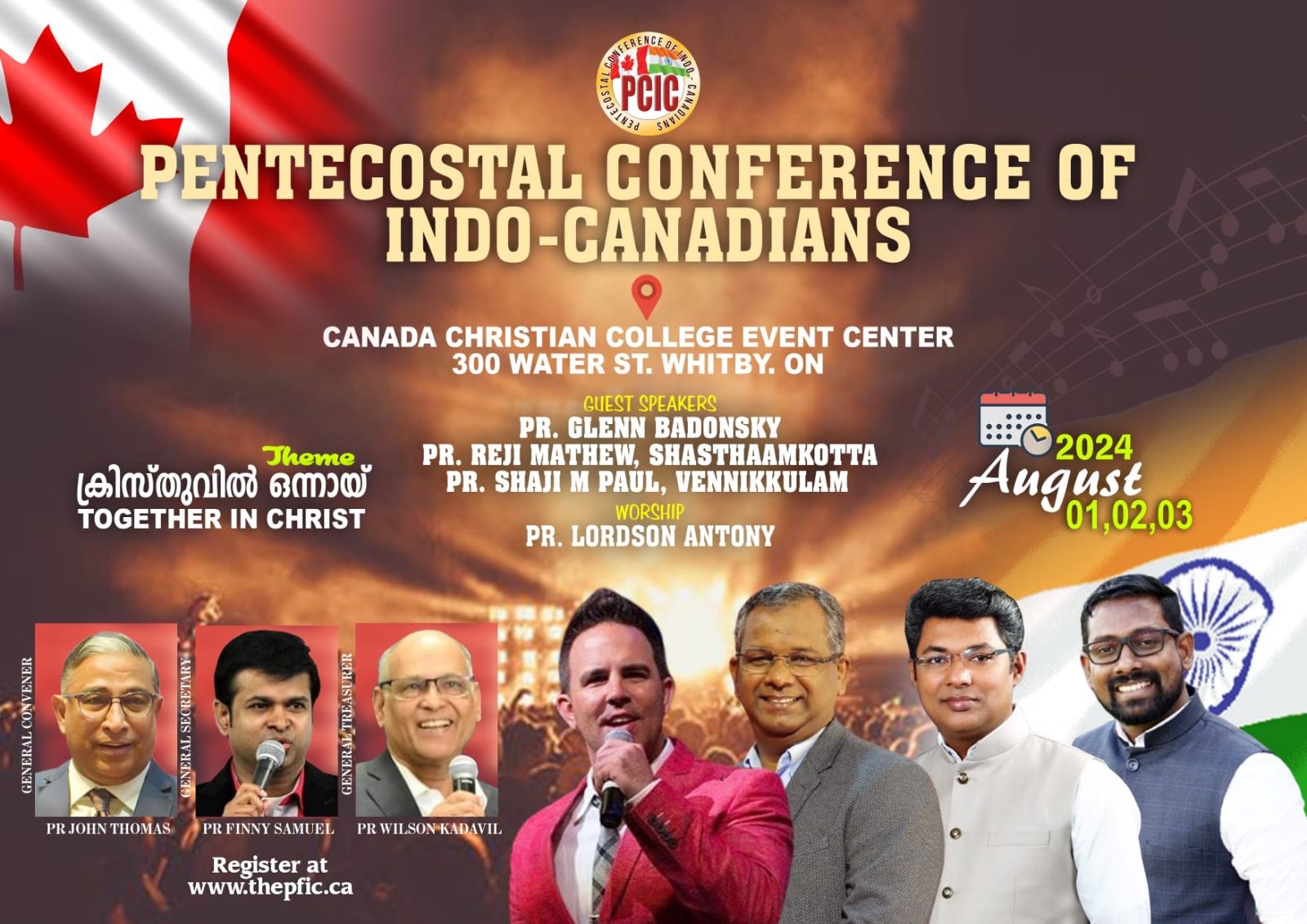 ഈ PCIC കോൺഫറൻസ് കാനഡ മലയാളി പെന്തക്കോസ് സഭകളുടെ ചരിത്രത്തിൽ ആദ്യമായി 10 പ്രൊവിൻസിൽ നിന്നും നൂറിൽപരം സഭകൾ ഇതിൽ പങ്കെടുക്കുവാൻ ആവേശത്തോടെ മുന്നോട്ട് വന്നിരിക്കുന്നു. ഇതൊരു വലിയ ഐക്യതയുടെയും ഉണർവിന്റെയും കാലമായി മാറുവാൻ ദൈവം നമ്മെ എല്ലാവരെയും ഉപയോഗിക്കട്ടെ എന്ന പ്രാർത്ഥനയോടെ, എല്ലാവരെയും വിറ്റ്ബിലേക്ക് വന്നുചേരുവാൻ ഞങ്ങൾ ഹാർദ്ദവമായി സ്വാഗതം ചെയ്യുന്നു.