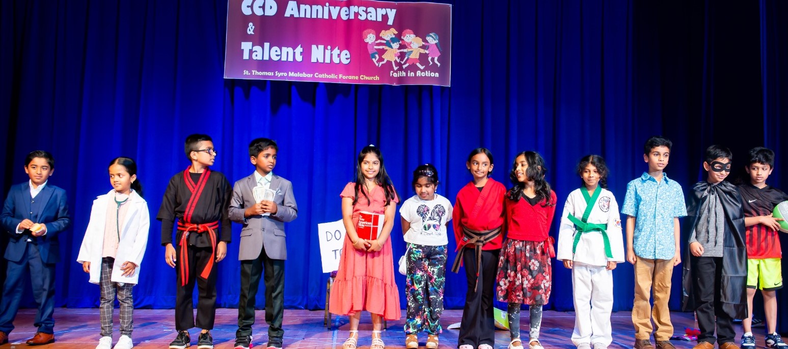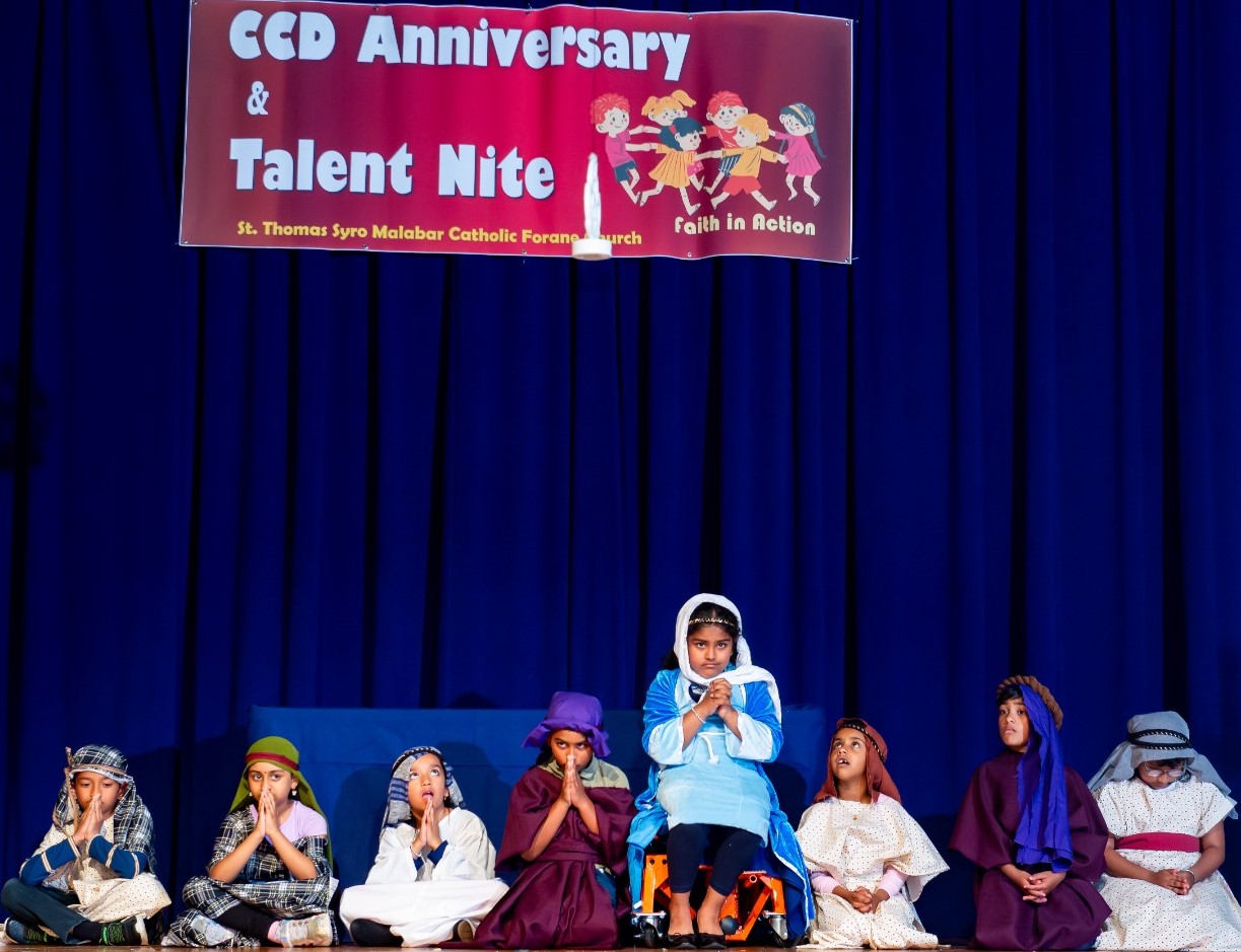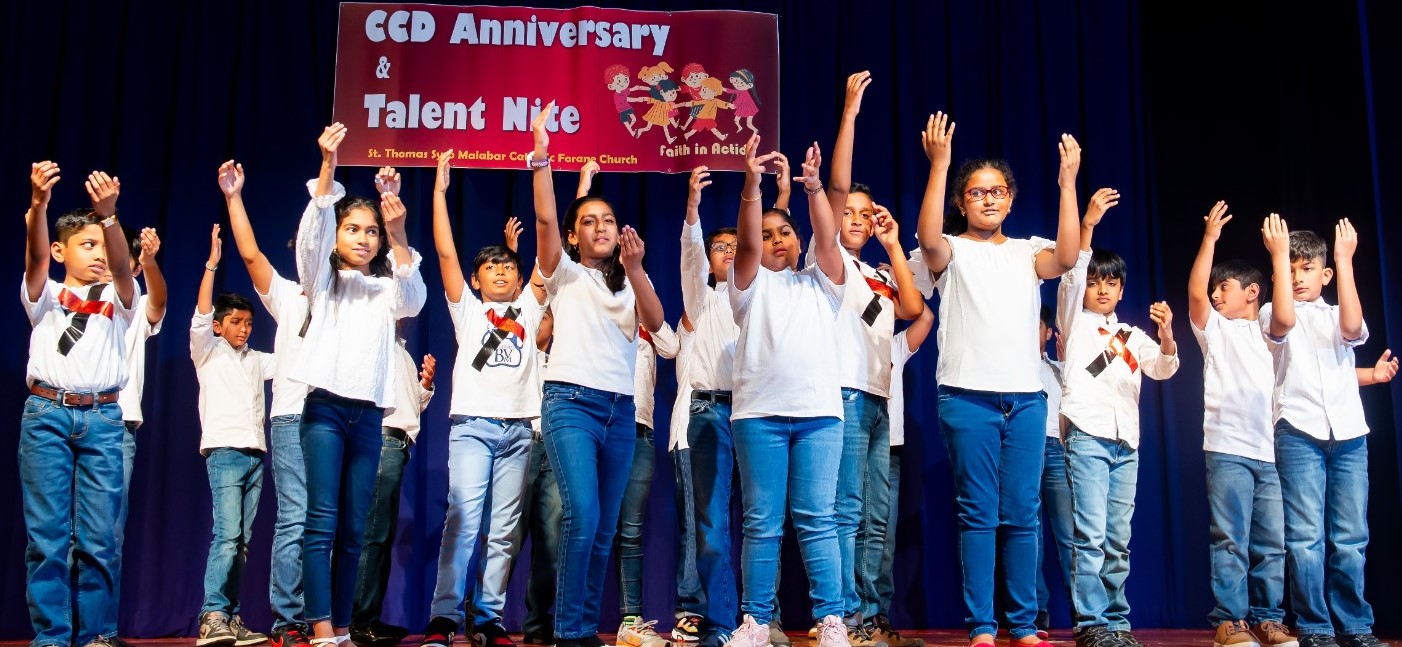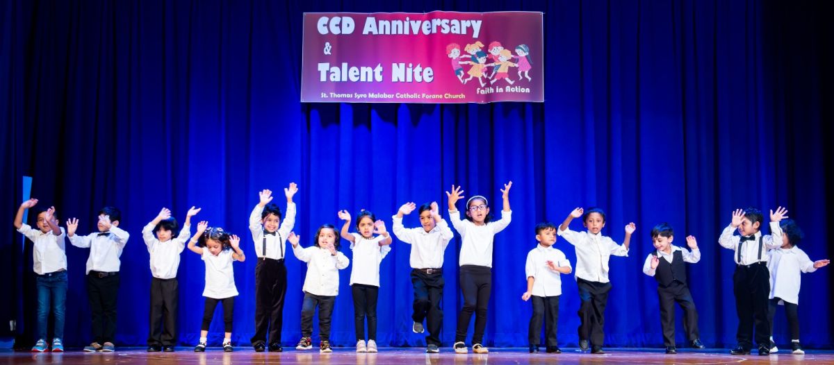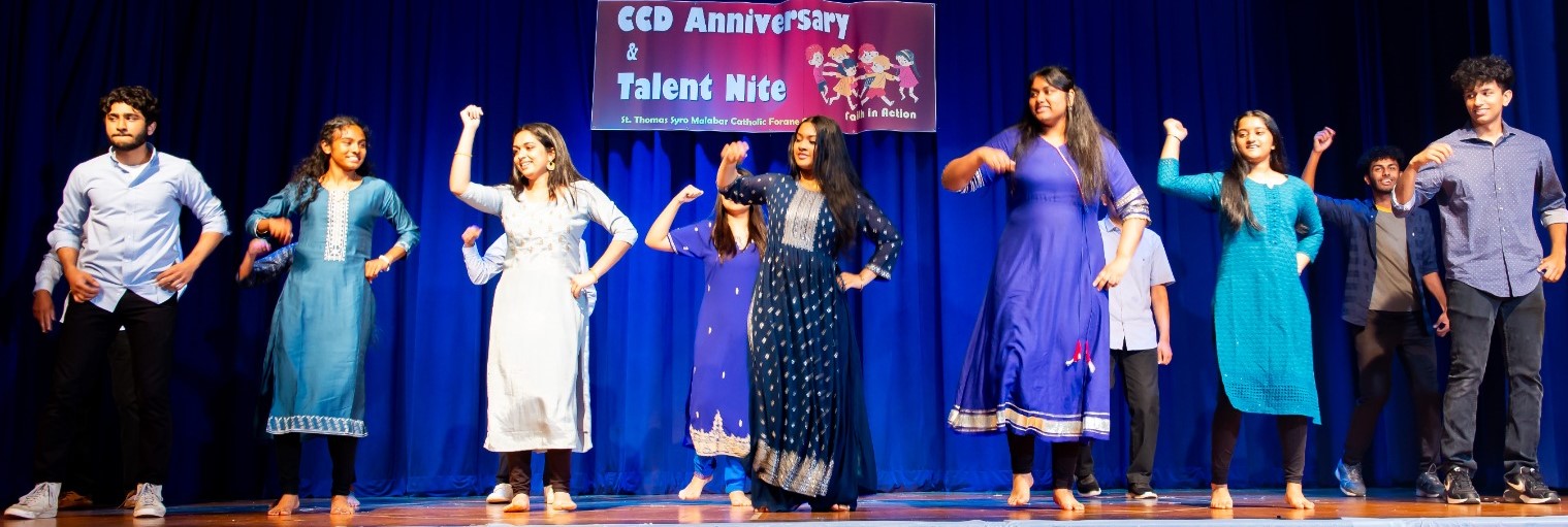 ജുവാന ജോമോന്റെ പ്രാര്ത്ഥനയോടെയും, ഗ്ലോറിയാ സന്തോഷ്, അനിതാ അലക്സ്, താരാ ജോസഫ്, ഗ്രെയിസ് ജോസഫ്, ജെസെല് മത്തായി എന്നിവരുടെ വിശേഷാല് സമൂഹനൃത്തത്തോടെയും ആരംഭിച്ച സി.സി.ഡി. നൈറ്റില് പ്രീകെ മുതല് പന്ത്രണ്ടുവരെ എല്ലാ ക്ലാസുകളിലെയും കുട്ടികള് വ്യ്തസ്തങ്ങളായ പരിപാടികള് അവതരിപ്പിച്ചു. പ്രീ കെ കുട്ടികളുടെ ആക്ഷന് സോങ്ങ് മുതല് പന്ത്രണ്ടാം ക്ലാസിന്റെ സമൂഹനൃത്തവും, മതാധ്യാപകരുടെ കൃതഞ്ജതാഗാനവും ശ്രദ്ധേയമായി.