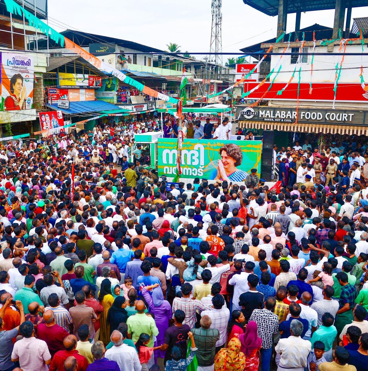 'വയനാട്ടിലെ ജനങ്ങൾക്ക് വേണ്ടി പാർലമെന്റിൽ ഇനിയുള്ള ദിവസം മുതൽ അവസാന ദിവസം വരെ ഞാൻ ശബ്ദം ഉയർത്തും. 35 വർഷമായി ഞാൻ തെരഞ്ഞെടുപ്പ് പ്രചരണം നടത്തുന്നു. ഇക്കാലയളവിൽ ലക്ഷക്കണക്കിന് ആളുകളെ ഞാൻ കണ്ടുമുട്ടി. പക്ഷെ ആദ്യമായിട്ടാണ് ഞാൻ മത്സരിച്ചത്. ഈ പ്രചാരണത്തിൽ ഇവിടെ കണ്ടു മുട്ടിയ ഓരോ മുഖവും ഞാൻ ജീവിതത്തിൽ എന്നും ഓർക്കും'. അവർക്കു വേണ്ടി ശബ്ദം ഉയർത്തുമെന്നും പ്രിയങ്ക വ്യക്തമാക്കി.