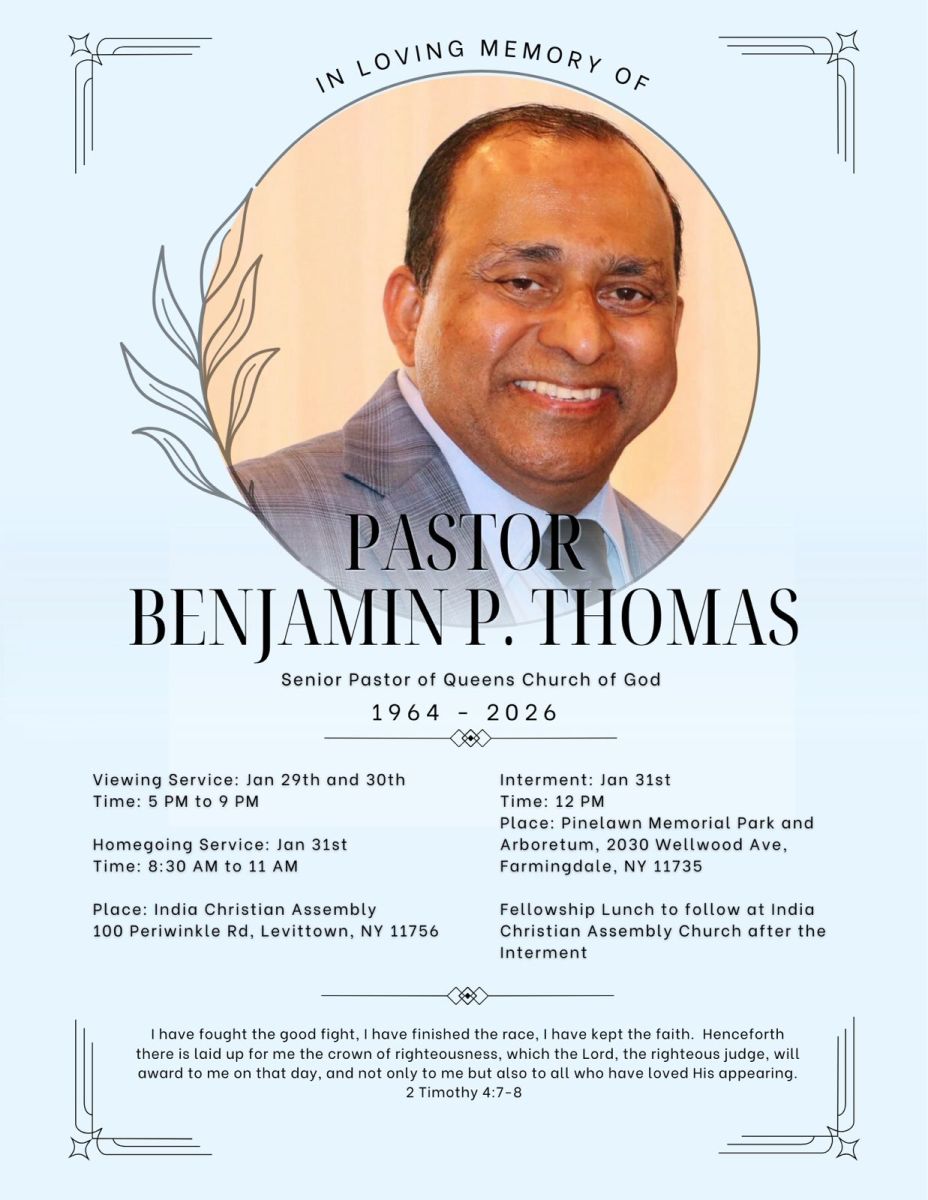 ഈസ്റ്റ് മെഡോ, ന്യൂയോര്ക്ക്: ക്വീന്സ് ചര്ച്ച് ഓഫ് ഗോഡ് സീനിയര് പാസ്റ്റര് ബെഞ്ചമിന് പി തോമസ്