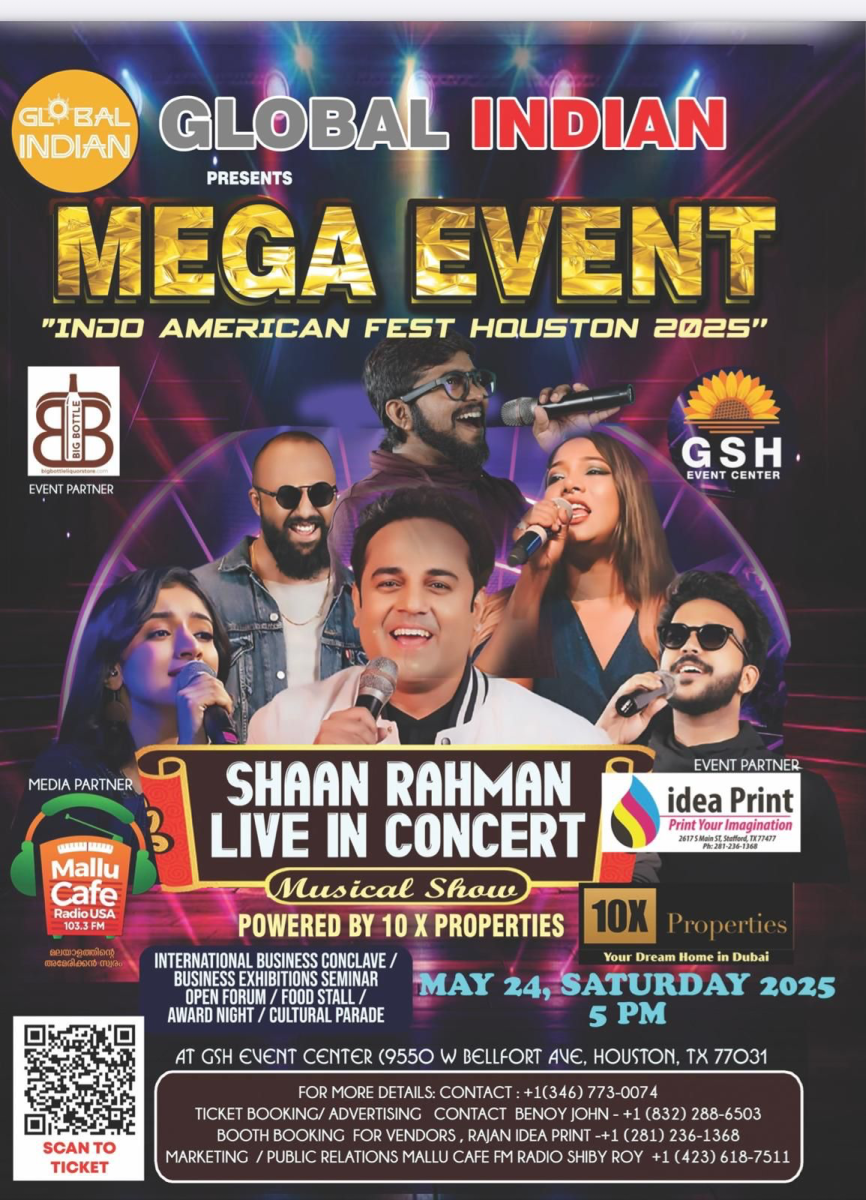 ഹൂസ്റ്റൺ: മെയ് 24 ന് ശനിയാഴ്ച വർണ്ണപ്പകിട്ടാർന്ന പരിപാടികളും നയന മനോഹര കാഴ്ചകളും ആസ്വാദക ലക്ഷങ്ങളുടെ ഹൃദയങ്ങളിൽ സ്ഥാനം പിടിച്ച ഷാൻ റഹ്മാൻ ലൈവ് ഇൻ മ്യൂസിക് ഷോയും ഉൾപ്പെടെ വൈവിധ്യമാർന്ന നിരവധി പരിപാടികൾ കോർത്തിണക്കി 12 മണിക്കൂർ നീളുന്ന മുഴു ദിന പരിപാടികളുമായി ഗ്ലോബൽ ഇന്ത്യൻ ന്യൂസ് അവതരിപ്പിക്കുന്ന " ഇൻഡോ അമേരിക്കൻ ഫെസ്റ്റ് - 2025 ന്റെ ഒരുക്കങ്ങൾ ആരംഭിച്ചു