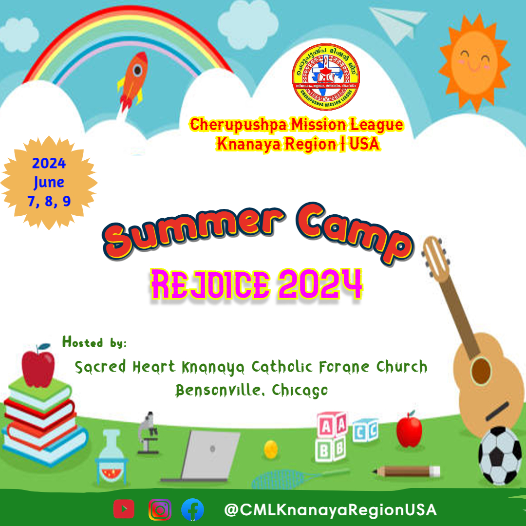 ചിക്കാഗോ: ചെറുപുഷ്പ മിഷൻ ലീഗ് ക്നാനായ റീജിയണൽ തലത്തിൽ "റിജോയ്സ് 2024" എന്ന പേരിൽ സമ്മർ ക്യാമ്പ് ചിക്കാഗോയിൽ വച്ച് സംഘടിപ്പിക്കുന്നു. ജൂൺ 7, 8, 9 തിയതികളിൽ ചിക്കാഗോ സേക്രഡ് ഹാർട്ട് ക്നാനായ കത്തോലിക്കാ ഫൊറോനാ ഇടവകയുടെ ആതിഥേയത്വത്തിലാണ് ക്യാമ്പ് നടത്തുന്നത്. അമേരിക്കയിലെ വിവിധ ഇടവകകളിൽ നിന്നുമുള്ള മിഷൻ ലീഗ് അംഗങ്ങൾ പങ്കെടുക്കും. വിജ്ഞാനവും ഉല്ലാസവും ഒത്തുചേർന്ന വിവിധ പരിപാടികളാണ് കുട്ടികൾക്കായി ക്യാമ്പിൽ ക്രമീകരിച്ചിരിക്കുന്നത്. ക്യാമ്പിന്റെ ഒരുക്കങ്ങൾ വിവിധ കമ്മിറ്റികളുടെ നേതൃത്വത്തിൽ പുരോഗമിച്ചു വരുന്നു.