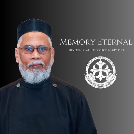 With faith in Christ and in the hope of resurrection we share the sad news that the Reverend Father Dr. George Koshy, fell asleep in the Lord on Wednesday, January 1, 2025.George Koshy Achen had served faithfully as the Vicar of St. George Orthodox Church of Westchester, New York for several decades for the American Diocese and now Northeast American Diocese and has authored books such as "Marriage, the Mystery of Love" and "The Wedding in Cana"