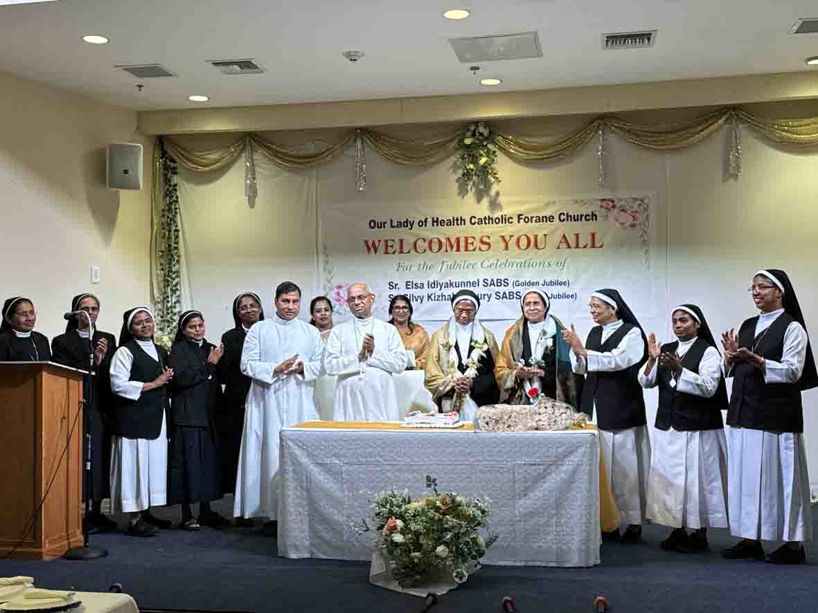 കാല് നൂറ്റാണ്ട് മുമ്പ് ആരാധന സന്യാസിനി സമൂഹത്തിന്റെ അംഗമായി ആവൃതിയുടെ അകതളങ്ങളില് മാത്രം ഒരുങ്ങിനില്ക്കാതെ, ലോകത്തിന്റെ വിവിധ ഭാഗങ്ങളില് പ്രേക്ഷിത വേല ചെയ്ത സിസ്റ്റര് സില്വി കിഴക്കേമുറിയുടെ സില്വര് ജൂബിലിയും സിസ്റ്റര് എല്സായുടെ സുവര്ണ്ണജൂബിലിയും ഔവര് ലേഡി ഓഫ് ഹെല്ത്ത് ഫോറാനാ ദേവാലയത്തില് സമുചിതമായി ആഘോഷിച്ചു.