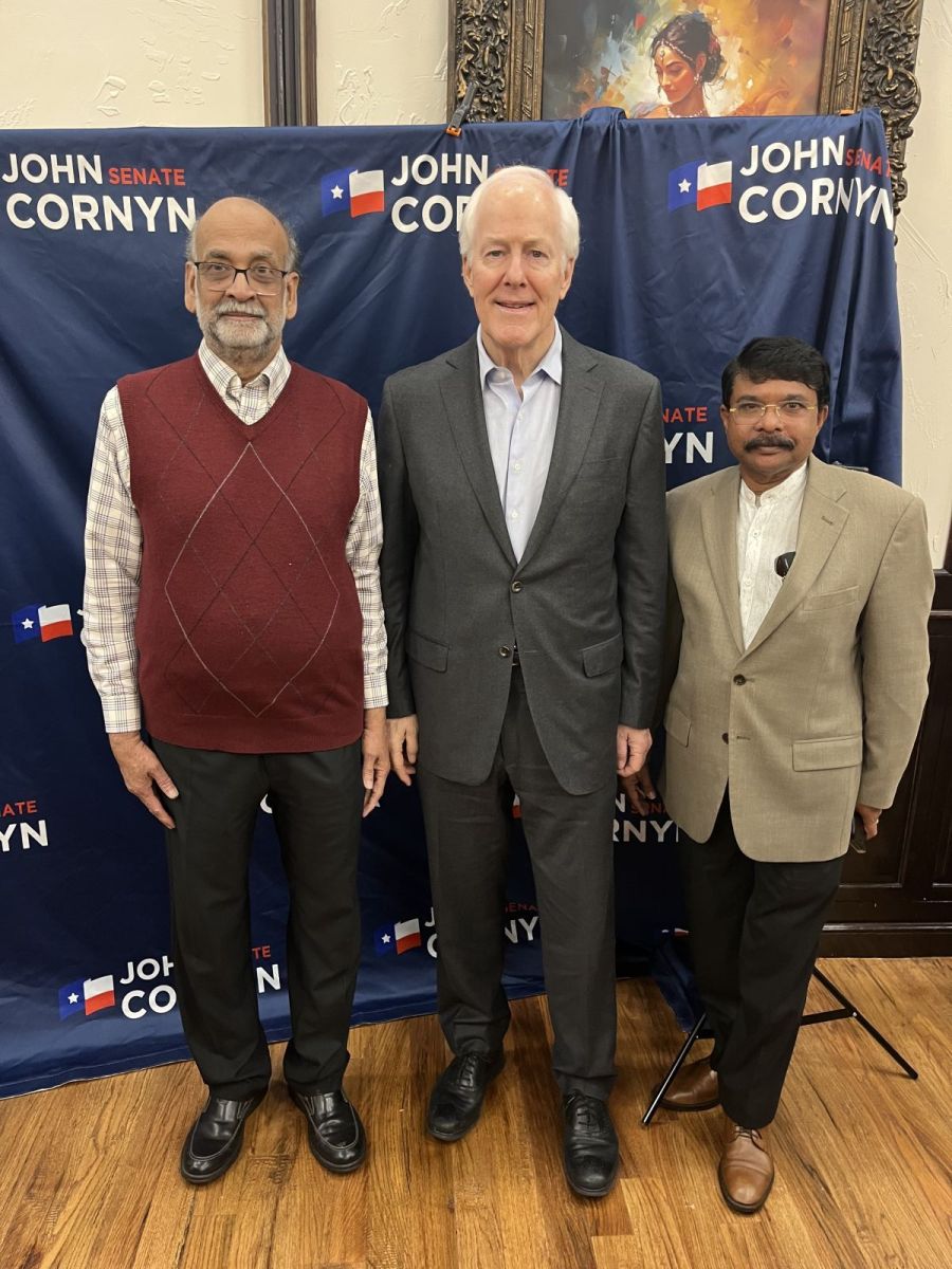 ഡാളസ്: 2026 മാർച്ച് 3-ന് നടക്കാനിരിക്കുന്ന റിപ്പബ്ലിക്കൻ പ്രൈമറിയിൽ നിലവിലുള്ള സെനറ്റർ ജോൺ കോൺയൺ തെരഞ്ഞെടുപ്പ് പ്രചാരണത്തിന്റെ ഭാഗമായി ഡാളസ് മെട്രോപ്ലെക്സിന്റെ ഹൃദയഭാഗത്തുള്ള ഭാരതീയ നിവാസ് ഗ്രാന്റ് ബാർ റൂമിൽ വിപുലമായ ജനസമ്പർക്ക പരിപാടി സംഘടിപ്പിച്ചു. അമേരിക്കയിലെ ഇന്ത്യൻ പ്രവാസി സമൂഹത്തിന്റെ കരുത്ത് വിളിച്ചോതുന്നതായിരുന്നു .ഈ ഒത്തുചേരലിനു ഡോ എ കെ മംഗോ നേതൃത്വം നൽകി.