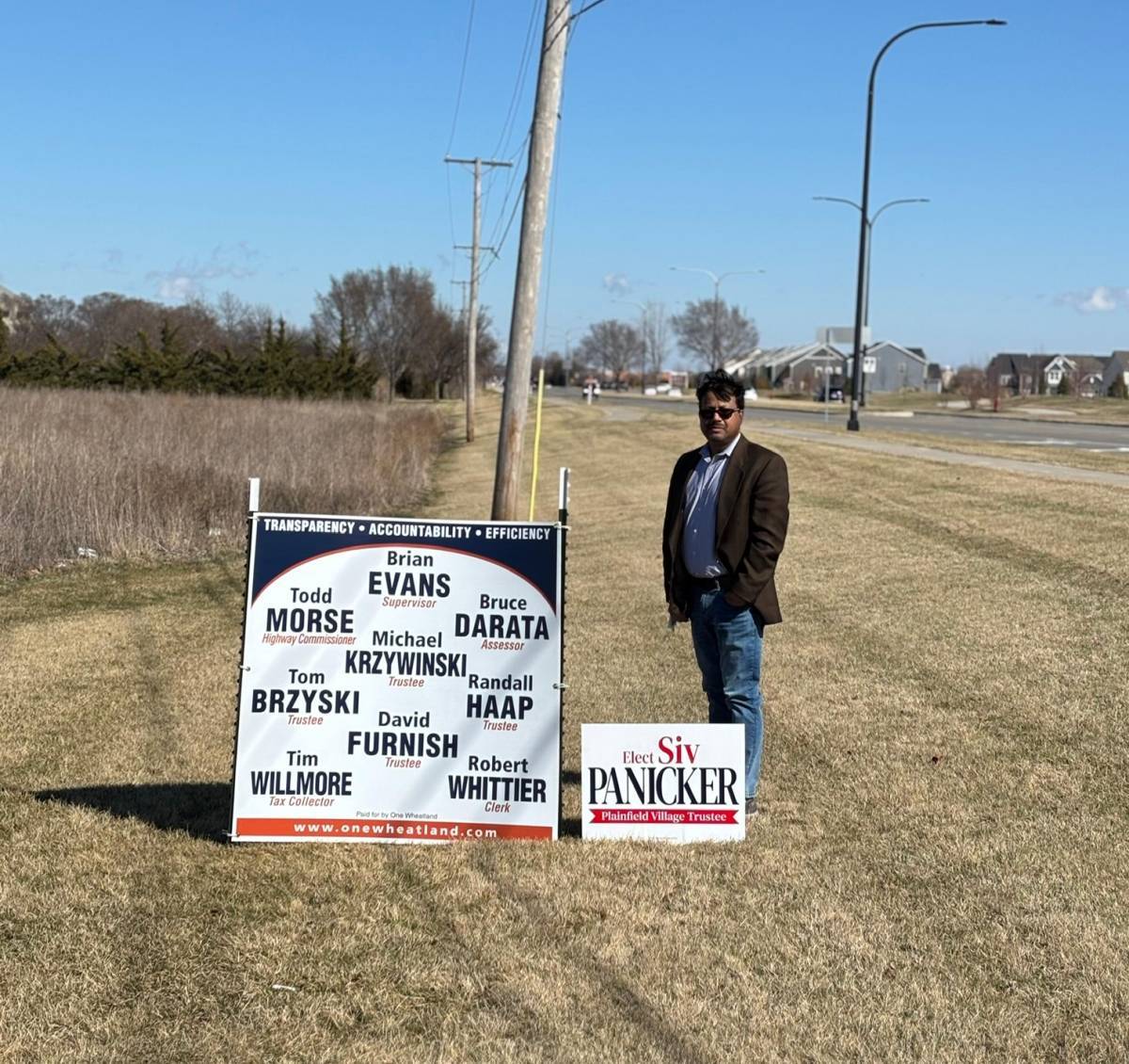 ചിക്കാഗോ നഗരത്തില് നിന്നും 35 മൈല് അകലെയുള്ള പ്ലെയിന്ഫീല്ഡ് വില്ലേജിന്റെ ജനസംഖ്യ 55,000. 1500-ല് താഴെയാണ് ഇന്ത്യക്കാര്. വോട്ടര്മാര് 28,000. ആറ് ട്രസ്റ്റിമാരും വില്ലേജ് പ്രസിഡണ്ട് (മേയര്) അടങ്ങിയ ബോര്ഡാണ് വില്ലേജിന്റെ ഭരണസമിതി. മൂന്നുപേരെ വേണ്ട സ്ഥാനത്ത് നാലുപേര് മത്സരരംഗത്തുണ്ടായിരുന്നു. അതില് ഒരാളെ അയോഗ്യനാക്കിയതിനാല് മറ്റ് മൂന്നുപേരും വിജയിച്ചു. ഇലക്ഷന് പാര്ട്ടി അടിസ്ഥാനത്തില് അല്ലായിരുന്നു. എങ്കിലും റിപ്പബ്ലിക്കന് പാര്ട്ടി ശിവ പണിക്കരെ പിന്തുണച്ചിരുന്നു. 2000-ത്തില്പ്പരം വോട്ട് ശിവ പണിക്കര്ക്ക് ലഭിച്ചു. അദ്ദേഹത്തിന്റെ ഇലക്ഷന് കമ്മിറ്റിക്ക് ഡെയ്ല് ഫൊന്റാന (ചെയര്മാന്), രാജ് പിള്ള (കോ-ചെയര്), ഷിബു കുര്യന് (സെക്രട്ടറി), ശിശിര് ജെയിന്, മദന് പാമൂലപതി, രാജന് മാടശ്ശേരി, സുബാഷ് ജോര്ജ് തുടങ്ങിയവര് നേതൃത്വം നല്കി.