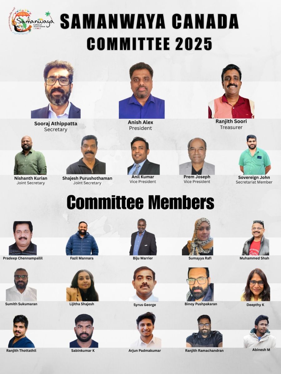 ടൊറന്റോ: രാജ്യവ്യാപകമായി പ്രവര്ത്തിക്കുന്ന കാനഡയിലെ പ്രമുഖ മലയാളി സംഘടനയായ സമന്വയ കള്ച്ചറല് ഓര്ഗനൈസേഷനെ അടുത്ത രണ്ട് വര്ഷം സൂരജ് അത്തിപ്പറ്റയും അനീഷ് അലക്സും നയിക്കും. ശനിയാഴ്ച ചേര്ന്ന വാര്ഷിക പൊതുയോഗം സെക്രട്ടറിയായി സൂരജിനെയും പ്രസിഡണ്ടായി അനീഷിനെയും തെരഞ്ഞെടുത്തു.