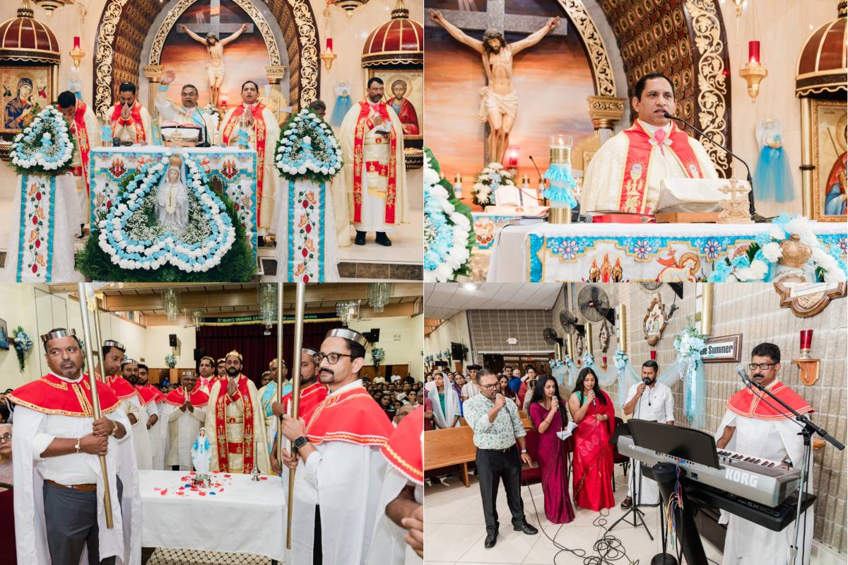 ചിക്കാഗോ: ചിക്കാഗോ സെന്റ് മേരീസ് ക്നാനായ കത്തോലിക്കാ ഇടവകയിലെ പരിശുദ്ധ ദൈവമാതാവിന്റെ ദർശന തിരുനാൾ ഒൻപത് ദിവസങ്ങൾ നീണ്ടു നിന്ന ഭക്തിനിർഭരമായ പരിപാടികളോടെ സമാപിച്ചു. കോട്ടയം കല്ലിശ്ശേരി ഇടവക വികാരി റവ. ഫാ. റെന്നി കട്ടേൽ അർപ്പിച്ച ഭക്തിനിർഭരമായ വിശുദ്ധ കുർബ്ബാനയോടെയാണ് തിരുനാൾ കർമ്മങ്ങൾ ആരംഭിച്ചത്. വിശുദ്ധ കുർബ്ബാനയ്ക്ക് ശേഷം നടത്തപ്പെട്ട നൊവേനക്കും ലദീഞ്ഞിനും പ്രദിക്ഷിണത്തിനും ശേഷം ഇടവക വികാരി റവ, ഫാ. സിജു മുടക്കോടിൽ തിരുനാൾ പതാക ഉയർത്തികൊണ്ട് തിരുനാളിന് ഔദ്യോഗികമായ തുടക്കം കുറിച്ചു. കൊടിയേറ്റിന് ശേഷം, തിരുനാൾ ഏറ്റെടുത്ത് നടത്തുന്ന സെന്റ് ജൂഡ് കൂടാരയോഗത്തിലെ വനിതകൾ അവതരിപ്പിച്ച ക്രിസ്ത്യൻ തിരുവാതിര ഏറെ ശ്രദ്ധ നേടി. സ്നേഹവിരുന്നോടെയാണ് തിരുനാളിന്റെ ഒന്നാം ദിനത്തെ ആഘോഷങ്ങൾ സമാപിച്ചത്. തുടർന്നുള്ള ദിവസങ്ങളിൽ മലങ്കര റീത്തിലുള്ള കുർബ്ബാനയടക്കം എല്ലാ ദിവസവും ആഘോഷമായ തിരുക്കർമ്മങ്ങൾ നടത്തപ്പെട്ടു. യുവജനങ്ങൾക്ക് വേണ്ടി ഇംഗ്ളീഷിലുള്ള തിരുക്കർമ്മങ്ങൾക്ക് വെള്ളിയാഴ്ച്ച വൈകുന്നേരം ക്നാനായ റീജിയൻ യൂത്ത് ഡയറക്ടർ ഫാ. ബീൻസ് ചേത്തലിൽ മുഖ്യ കാർമികത്വം വഹിച്ചു. തുടർന്ന് ഇടവകയിലെ കൂടാരയോഗങ്ങളുടെ നേതൃത്വത്തിൽ നടത്തപ്പെട്ട കലാ സന്ധ്യ വൈവിധ്യമാർന്ന പരിപാടികളോടെ ശ്രദ്ധ നേടി. ശനിയാഴ്ച്ച വൈകുന്നേരം ബെൻസൺ വിൽ സേക്രഡ് ഹാർട്ട് ക്നാനായ ഇടവക യുടെ ആഭിമുഖ്യത്തിൽ നടത്തപ്പെട്ട തിരുക്കർമ്മങ്ങൾക്ക് ഇടവക വികാരിയും ക്നാനായ റീജിയൻ ഡയറക്ടറും കൂടിയായ മോൺസിഞ്ഞോർ തോമസ് മുളവനാൽ മുഖ്യ കാർമികത്വം വഹിച്ചു. ദർശന സമൂഹത്തിന്റെ ആഭിമുഖ്യത്തിൽ പ്രസിദേന്തി വാഴ്ചയും കപ്ലോൻ വാഴ്ച്ചയും തിരുക്കർമ്മങ്ങളുടെ ഭാഗമായി നടത്തപ്പെട്ടു. തുടർന്ന് നടത്തപ്പെട്ട കലാ സന്ധ്യക്ക് മുൻപായി കോട്ടയം അതിരൂപതാംഗവും അൾജീരിയയുടെയും ട്യുണീഷ്യയുടെയും വത്തിക്കാൻ സ്ഥാനപതിയായി സേവനം അനുഷ്ഠിക്കുന്ന ആർച്ച് ബിഷപ്പ് കുര്യൻ വയലുങ്കൽ പിതാവിന് ഇടവകയുടെ ഔദ്യോഗികമായ സ്വീകരണം നൽകുകയും അദ്ദേഹം കലാ സന്ധ്യ ഉദ്ഘാടനം ചെയ്യുകയും ചെയ്തു. കലാ സന്ധ്യക്ക് തിരുനാൾ പ്രസുദേന്തിമാരായ സെന്റ് കൂടാരയോഗത്തിലെ അംഗങ്ങളും ഇടവകയിലെ വിവിധ മിനിസ്ട്രികളും നേതൃത്വം നൽകി.